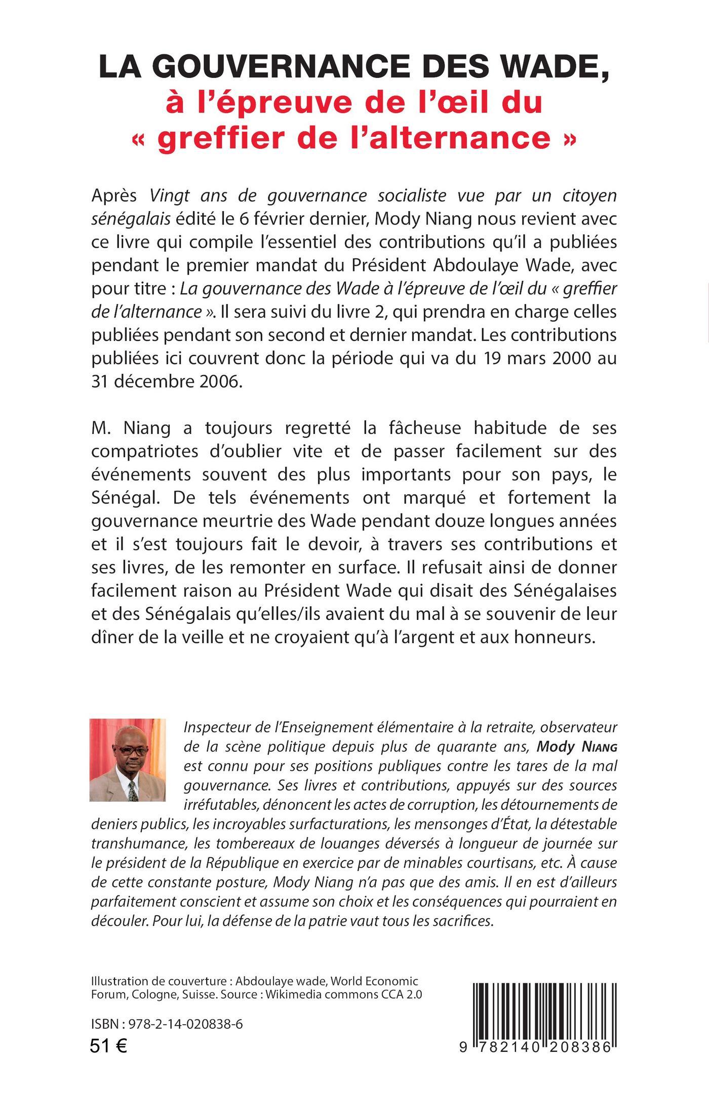 Mody Niang revient avec ce livre qui compile l'essentiel des contributions qu'il a publiées pendant le premier mandat du Président Abdoulaye Wade. Il sera suivi du livre 2, qui prendra en charge celles publiées pendant son second et dernier mandat. M. Niang a toujours regretté la fâcheuse habitude de ses compatriotes d'oublier vite et de passer facilement sur des événements souvent des plus importants pour son pays, le Sénégal. De tels événements ont marqué et fortement la gouvernance meurtrie des Wade pendant douze longues années et il s'est toujours fait le devoir, à travers ses contributions et ses livres, de les remonter en surface.