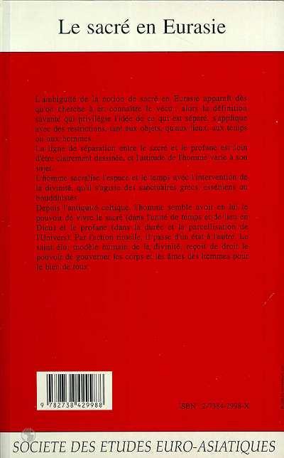 L'ambiguïté de la notion de sacré en Eurasie apparait dès qu'on cherche à en connaitre le vécu : alors la définition savante qui privilégie l'idée de ce qui est séparé, s'applique avec des restrictions, tant aux objets. qu'aux lieux, aux temps ou hommes.