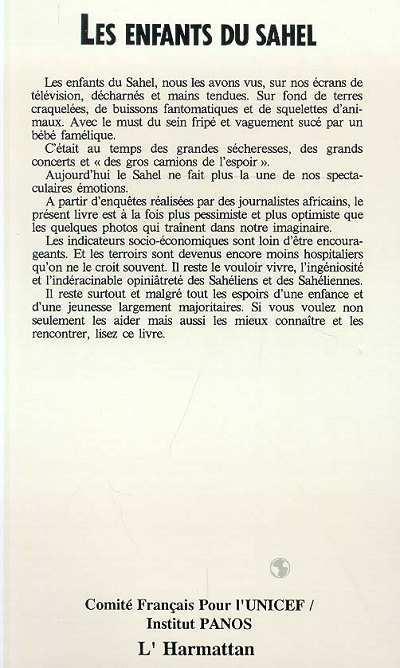 Les enfants du Sahel, nous les avons vus, sur nos écrans de télévision, décharnés et mains tendues. Sur fond de terres craquelées, de buissons fantomatiques et de squelettes d'animaux. A voc le must du sein fripé et vaguement sucé par un bébé famélique.