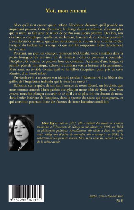 Alors qu'il n'est encore qu'un enfant, Nicéphore découvre qu'il possède un inquiétant pouvoir. Bien que sa mère lui fasse jurer de n'en user sous aucun prétexte, un inconnu, monsieur McDonald, parvient néanmoins à le persuader de le cultiver. Après un long et pénible parcours initiatique, il parviendra aux sommets de la gloire, sans se douter qu'il lui faudra s'acquitter, pour prix de cette réussite, d'un lourd tribut. Réflexion sur la quête de soi, sur l'essence de notre liberté, Moi, mon ennemi nous fait plonger au cœur de ce qu'il y a de plus noir en chacun de nous.