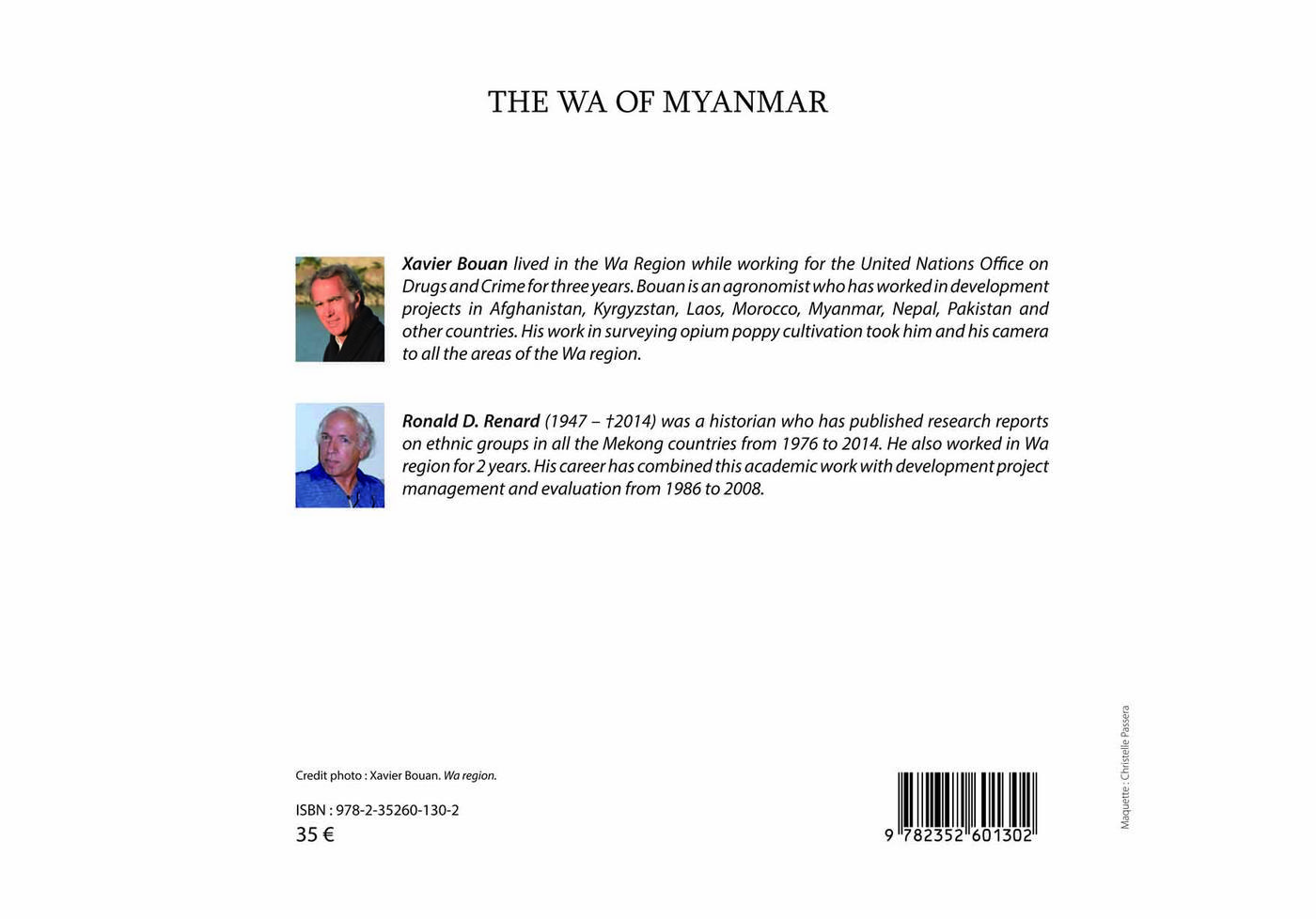 Located in the Golden Triangle, and one of the most remote and closed-off areas of Myanmar, Wa Special Region 2, was and still is, closed to tourism and almost all visits of any kind. I was privileged to live and work there for three years as the manager of the Wa Alternative Development Project (WADP) implemented by UNODC. The main focus of the book will be to show the life of the people, including the Wa and the other ethnic groups living there. Topics such as poppy cultivation and the Wa Army are also covered. Particular attention is paid to critical time when opium cultivation was successfully banned in 2005 and how this affected the way of life of the people.