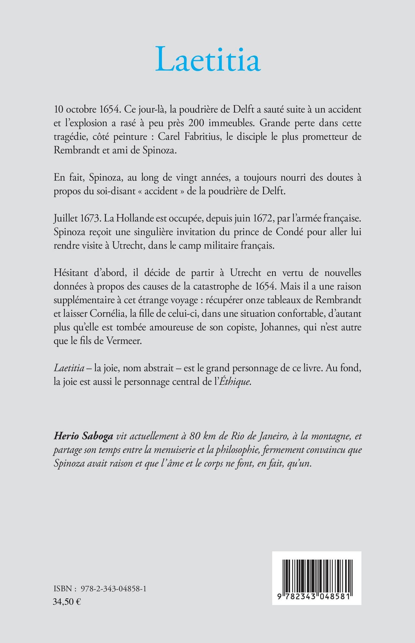 10 octobre 1654. Ce jour-là, la poudrière de Delft a sauté et l'explosion a rasé à peu près 200 immeubles. Dans l'accident, disparaît Carel Fabritius, le disciple le plus prometteur de Rembrandt et ami de Spinoza. Ce dernier a toujours eu des doutes à propos du prétendu "accident". Juillet 1673. Spinoza reçoit une singulière invitation du prince de Condé pour aller lui rendre visite à Utrecht, dans le camp militaire français. Désireux d'en savoir plus sur la catastrophe de 1654 il décide de partir et de récupérer par là -même onze tableaux de Rembrandt.