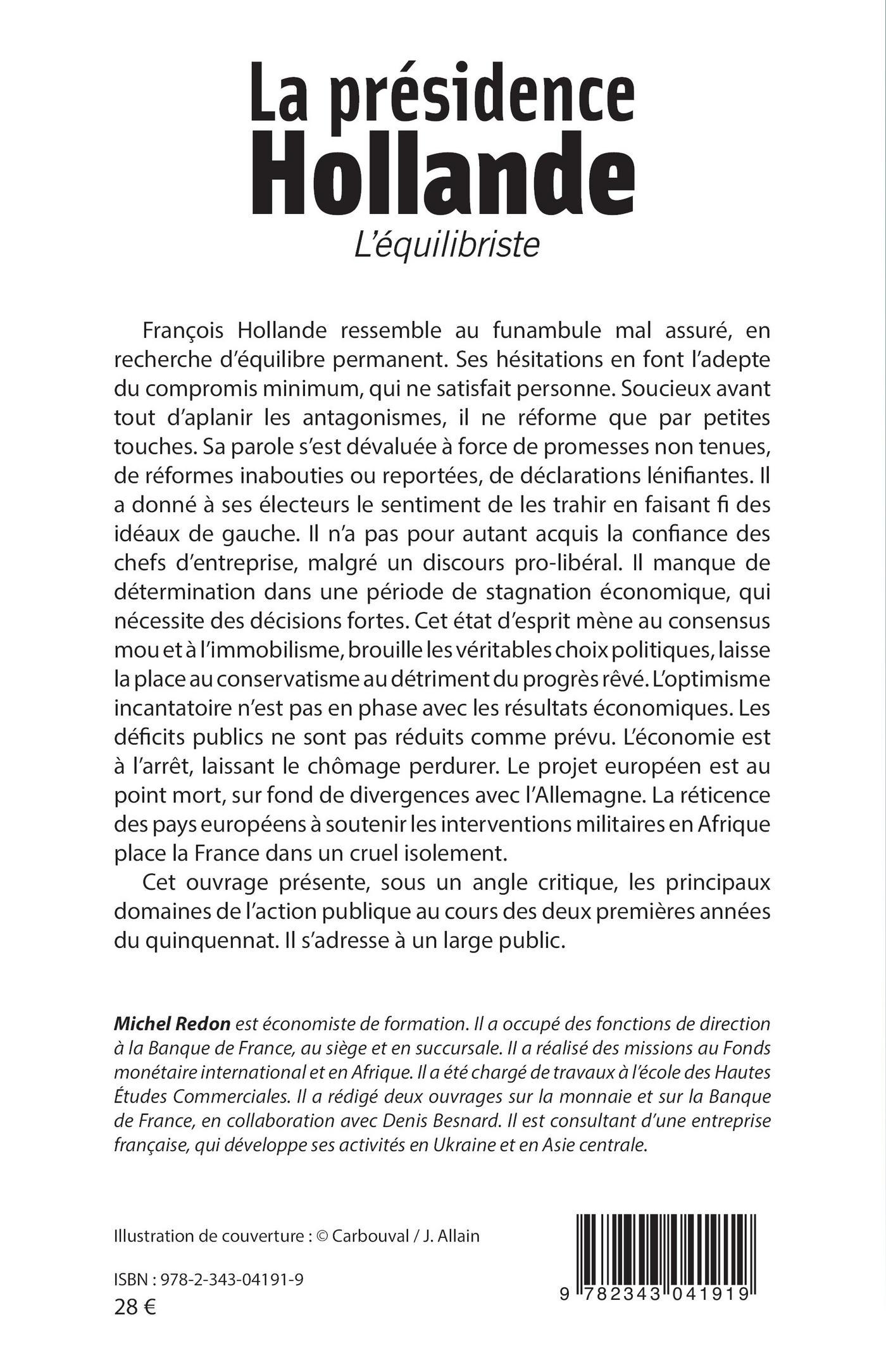 François Hollande ressemble au funambule mal assuré, en recherche d'équilibre permanent. Ses hésitations en font l'adepte du compromis minimum, qui ne satisfait personne. L'optimisme incantatoire n'est pas en phase avec les résultats économiques. Les déficits publics ne sont pas réduits. L'économie est à l'arrêt, le chômage perdure. Ainsi, cet ouvrage qui veut s'adresser à un large public, présente, sous un angle critique, les principaux domaines de l'action publique au cours des deux premières années du quinquennat. Pour aller plus loin : http://www.lapresidencehollandelequilibriste.blog4ever.com