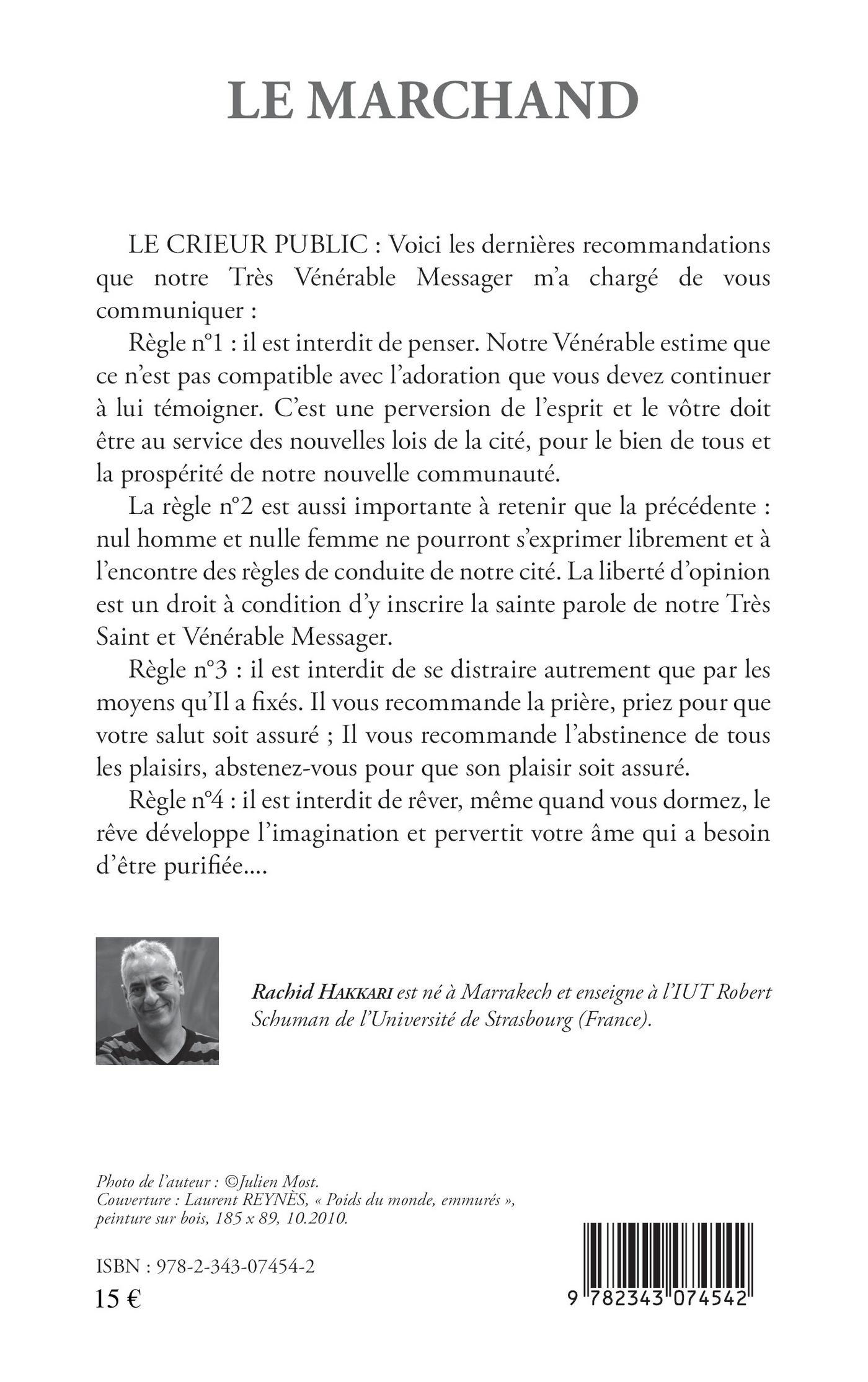 LE CRIEUR PUBLIC : Voici les dernières recommandations que notre Très Vénérable Messager m'a chargé de vous communiquer : Règle n°1: il est interdit de penser. Notre Vénérable estime que ce n'est pas compatible avec l'adoration que vous devez continuer à lui témoigner. C'est une perversion de l'esprit et le vôtre doit être au service des nouvelles lois de la cité, pour le bien de tous et la prospérité de notre nouvelle communauté. La règle n°2: nul homme et nulle femme ne pourront s'exprimer librement et à l'encontre des règles de conduite de notre cité. La liberté d'opinion est un droit à condition d'y inscrire la sainte parole de notre Très Saint et Vénérable Messager.