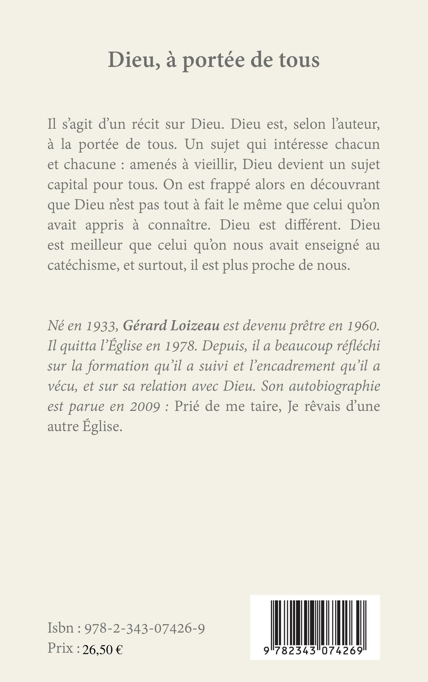 Il s'agit d'un récit sur Dieu. Dieu est, selon l'auteur, à la portée de tous. Un sujet qui intéresse chacun et chacune : amenés à vieillir, Dieu devient un sujet capital pour tous. On est frappé alors en découvrant que Dieu n'est pas tout à fait le même que celui qu'on avait appris à connaître. Dieu est différent. Dieu est meilleur que celui qu'on nous avait enseigné au catéchisme, et surtout, il est proche de nous.