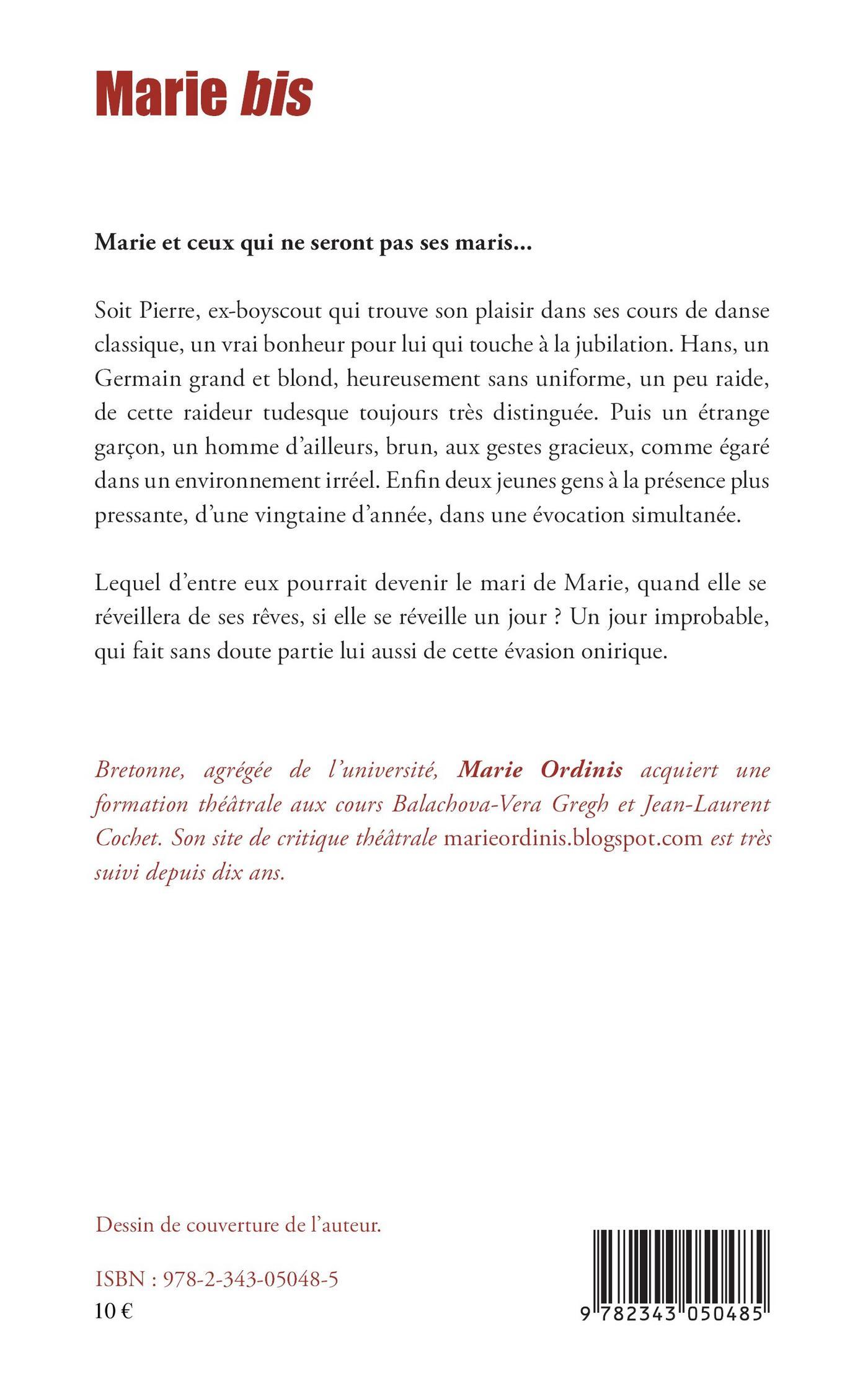 Marie et ceux qui ne seront pas ses maris... Soit Pierre, ex-boyscout qui trouve son plaisir dans ses cours de danse classique, un vrai bonheur pour lui qui touche à la jubilation. Hans, un Germain grand et blond, heureusement sans uniforme, un peu raide, de cette raideur tudesque toujours très distinguée. Puis un étrange garçon, un homme d'ailleurs, brun, aux gestes gracieux, comme égaré dans un environnement irréel. Enfin deux jeunes gens à la présence plus pressante, d'une vingtaine d'année, dans une évocation simultanée. Lequel d'entre eux pourrait devenir le mari de Marie, quand elle se réveillera de ses rêves, si elle se réveille un jour ? Un jour improbable, qui fait sans doute partie lui aussi de cette évasion onirique.