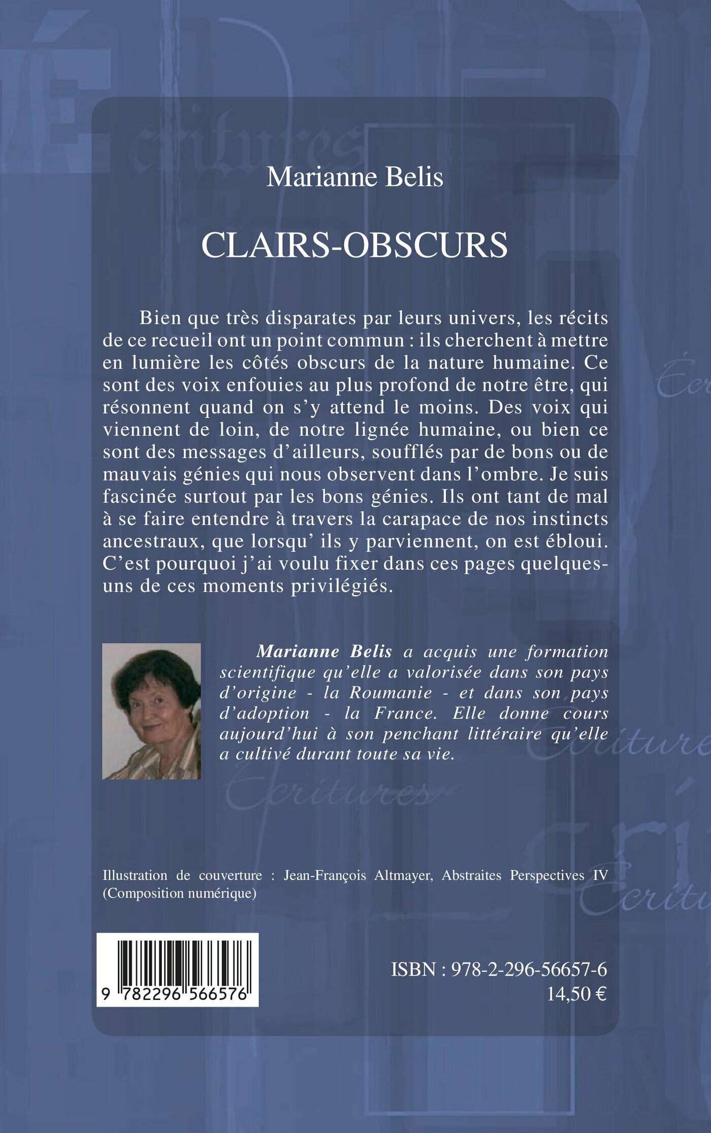 Bien que très disparates par leurs univers, les récits de ce recueil ont un point commun : ils cherchent à mettre en lumière les côtés obscurs de la nature humaine. Ce sont des voix enfouies au plus profond de notre être, qui résonnent quand on s’y attend le moins. Des voix qui viennent de loin, de notre lignée humaine, ou bien ce sont des messages d’ailleurs, soufflés par de bons ou de mauvais génies qui nous observent dans l’ombre. Je suis fascinée surtout par les bons génies. Ils ont tant de mal à se faire entendre à travers la carapace de nos instincts ancestraux, que lorsqu’ils y parviennent, on est ébloui. C’est pourquoi j’ai voulu fixer dans ces pages quelques-uns de ces moments privilégiés.