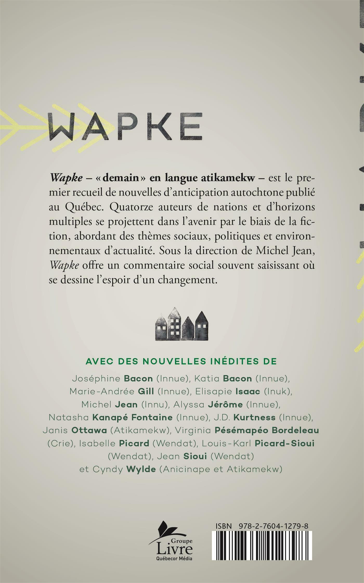 Wapke – « demain » en langue atikamekw – est le premier recueil de nouvelles d'anticipation autochtone publié au Québec. Quatorze auteurs de nations et d'horizons multiples se projettent dans l'avenir par le biais de la fiction, abordant des thèmes sociaux, politiques et environnementaux d'actualité. Sous la direction de Michel Jean, Wapke offre un commentaire social souvent saisissant où se dessine l'espoir d'un changement.