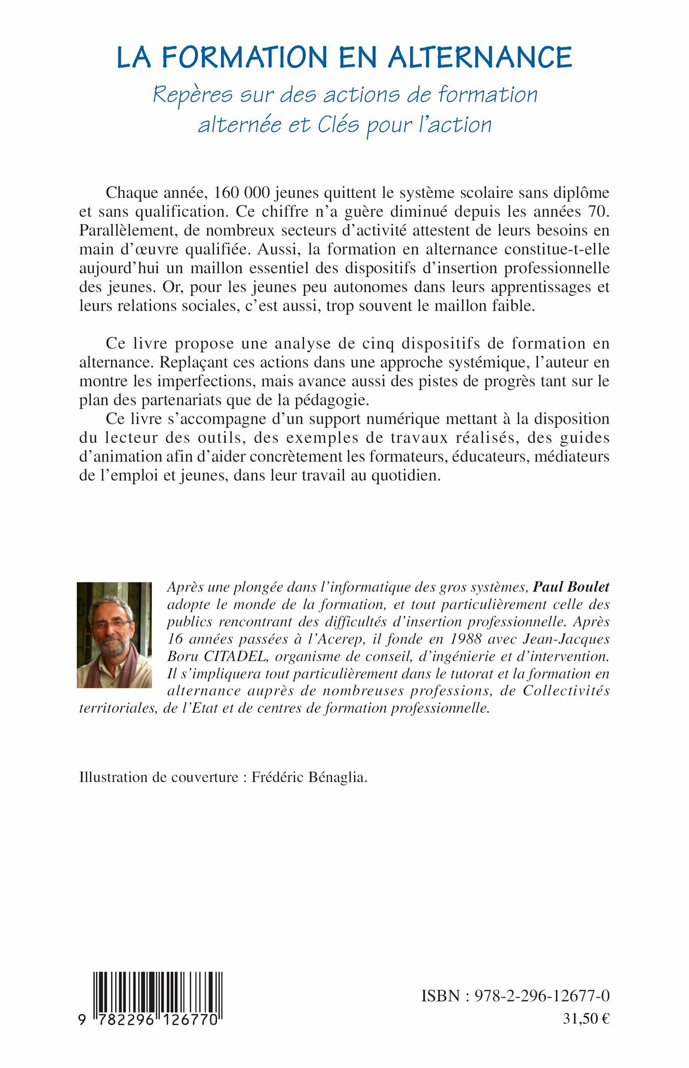 Chaque année, 160 000 jeunes quittent le système scolaire sans diplôme et sans qualification. Parallèlement, de nombreux secteurs d'activité attestent de leurs besoins en main d'uvre qualifiée. Aussi la formation en alternance constitue-t-elle aujourd'hui un maillon essentiel des dispositifs d'insertion professionnelle des jeunes. Ce livre propose une analyse de cinq dispositifs de formation en alternance. L'auteur en montre les imperfections, mais avance aussi des pistes de progrès.