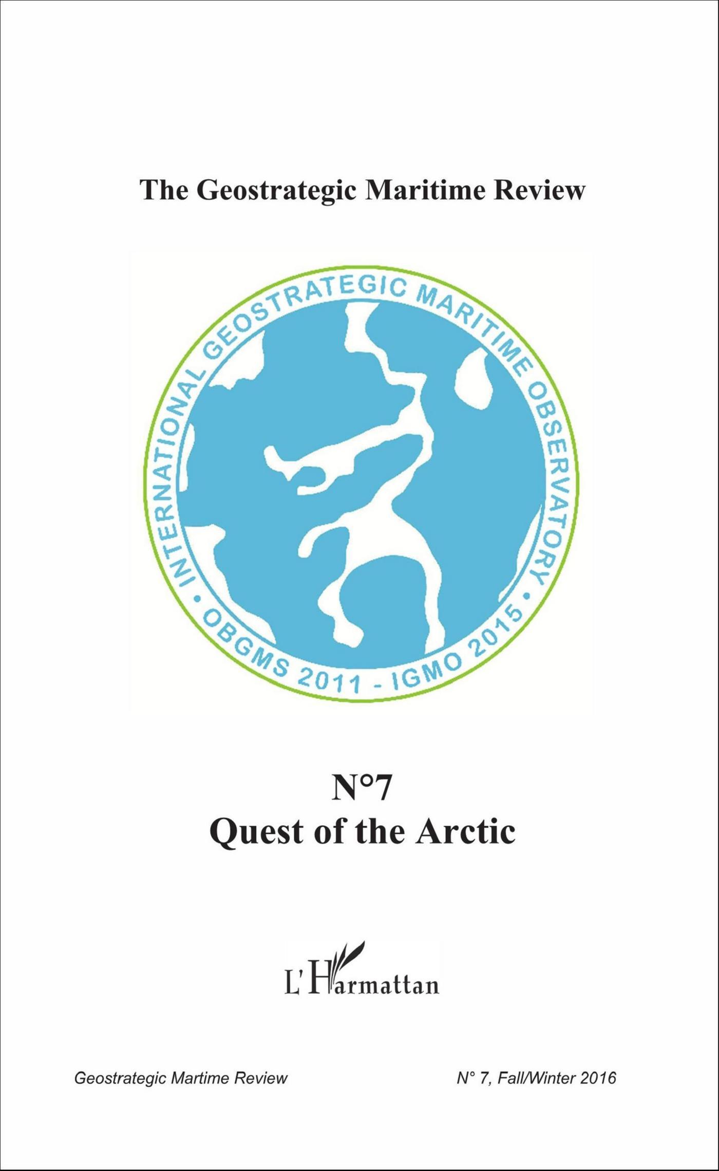 This seventh issue of the Geostrategic Maritime Review comes on the sixth year of activity of the International Geostrategic Maritime Observatory. This publication contains five articles : Arctic Geopolitics as a Major Public Issue : the Reasons Behind a Lack of Awareness ; Harvesting Arctic Authority : The Protection of Arctic Biomarine Resources, Sovereignty and Global Security ; The Case for an International Régime for the Arctic ; 25 years ago : the Odyssey of the Astrolabe and A life in the service of France, of the Pacific, and the Arctic and Antarctica : Michel Rocard (1930-2016), Regions.