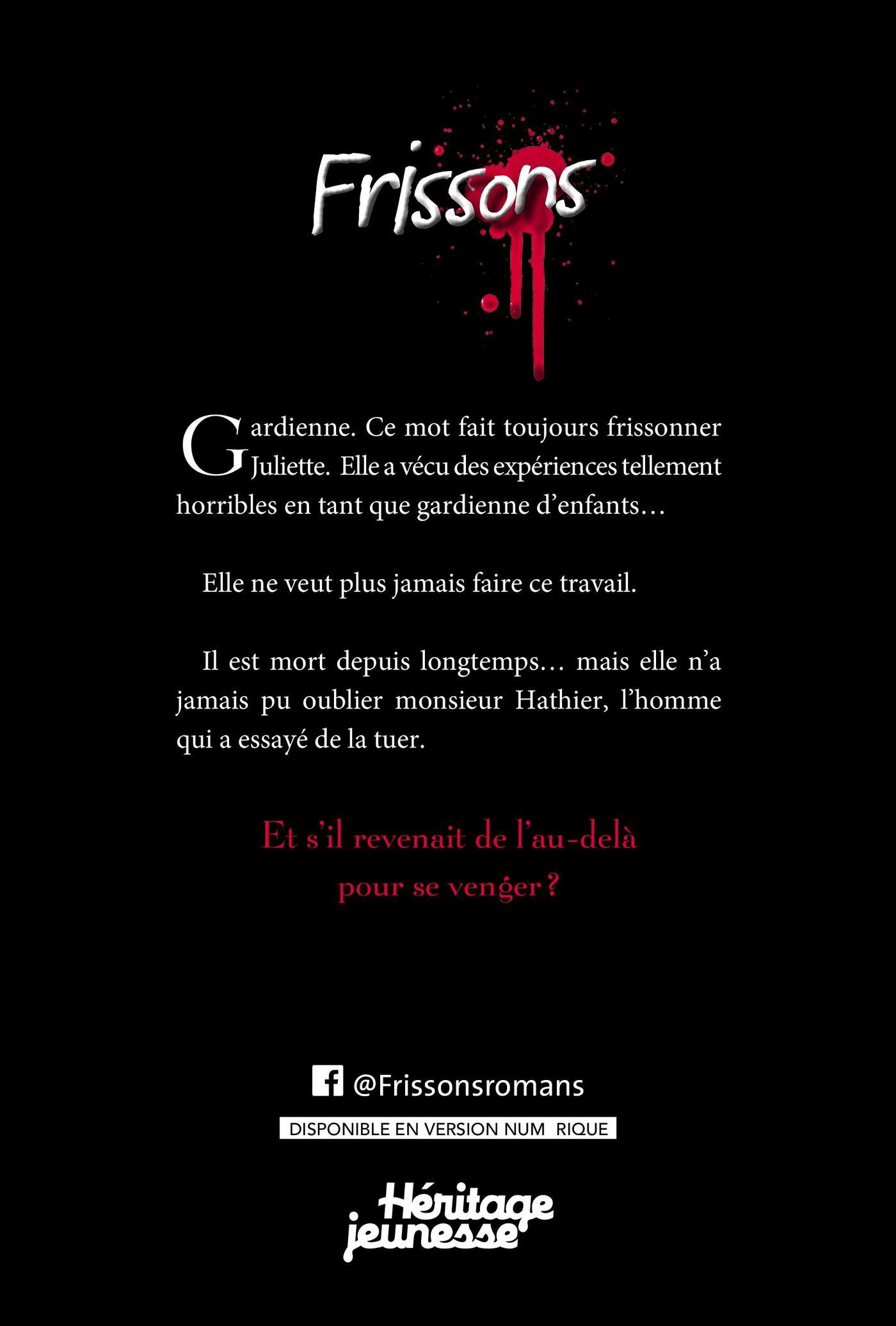 Depuis qu’elle a été attaquée à deux reprises par des tueurs sanguinaires alors qu’elle travaillait comme gardienne d’enfant, la vie de Juliette est devenue un véritable cauchemar. Elle a beaucoup de difficulté à mener une vie normale. Une chose est sûre : elle ne fera plus jamais de baby-sitting! Une appréhension que ne partage pas sa cousine Mégane, qui est toute heureuse d’avoir trouvé un emploi d’été pour garder un bébé qui passe le plus clair de son temps à dormir… Jusqu’à ce qu’elle reçoive un appel anonyme… exactement comme ceux que recevait Juliette.« Salut bébé! Je suis de retour. Tu vas avoir de la compagnie… »