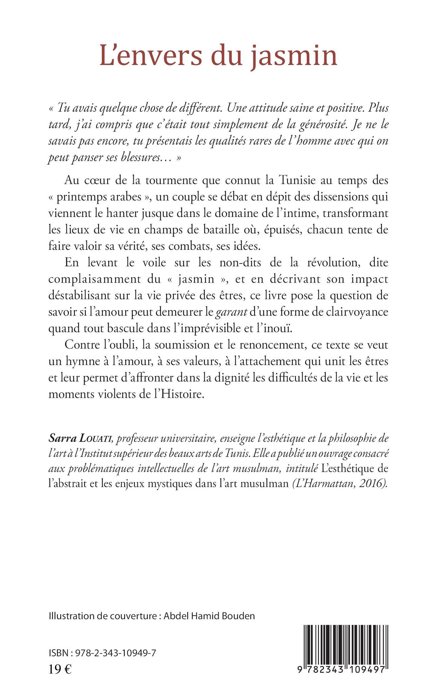 Au coeur de la tourmente que connut la Tunisie au temps des « printemps arabes », un couple se débat en dépit des dissensions qui viennent le hanter jusque dans le domaine de l’intime. En levant le voile sur les non-dits de la révolution, dite du « jasmin », et en décrivant son impact déstabilisant sur la vie privée des êtres, ce livre pose la question de savoir si l’amour peut demeurer le garant d’une forme de clairvoyance quand tout bascule dans l’imprévisible et l’inouï. Sarra Louati nous offre ici un véritable hymne à l’amour comme remèdes aux difficultés de la vie et aux moments violents de l’Histoire.