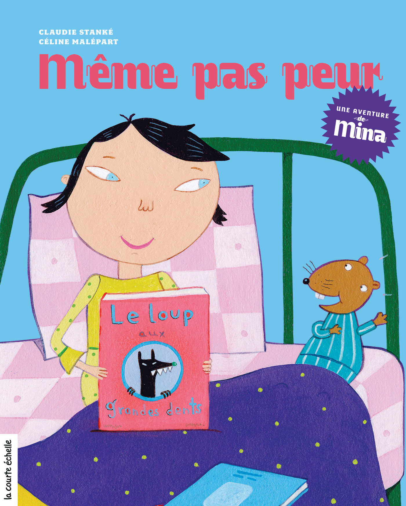 C’est l’heure de se coucher, l’heure des histoires ! Pyjama enfilé, Touti choisit les livres que Mina lui racontera. Loups, sorcières, monstres : il veut des histoires qui font peur ! Mina hésite, car elle trouve son ami trop petit. Il va avoir trop peur ! Mais Touti insiste. Il se trouve grand et courageux. Jusqu’à ce qu’une frayeur le surprenne. Heureusement, tout finira bien !