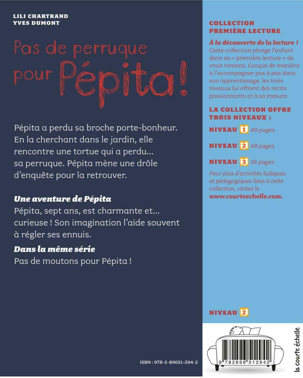 Pépita a égaré sa broche porte-bonheur. Alors qu’elle la cherche, elle fait la connaissance de monsieur Tortufo, une tortue chauve, qui a aussi perdu quelque chose : sa perruque ! Pépita lui propose de l’aider… et retrouve par la même occasion son porte-bonheur d’une façon plutôt inattendue.