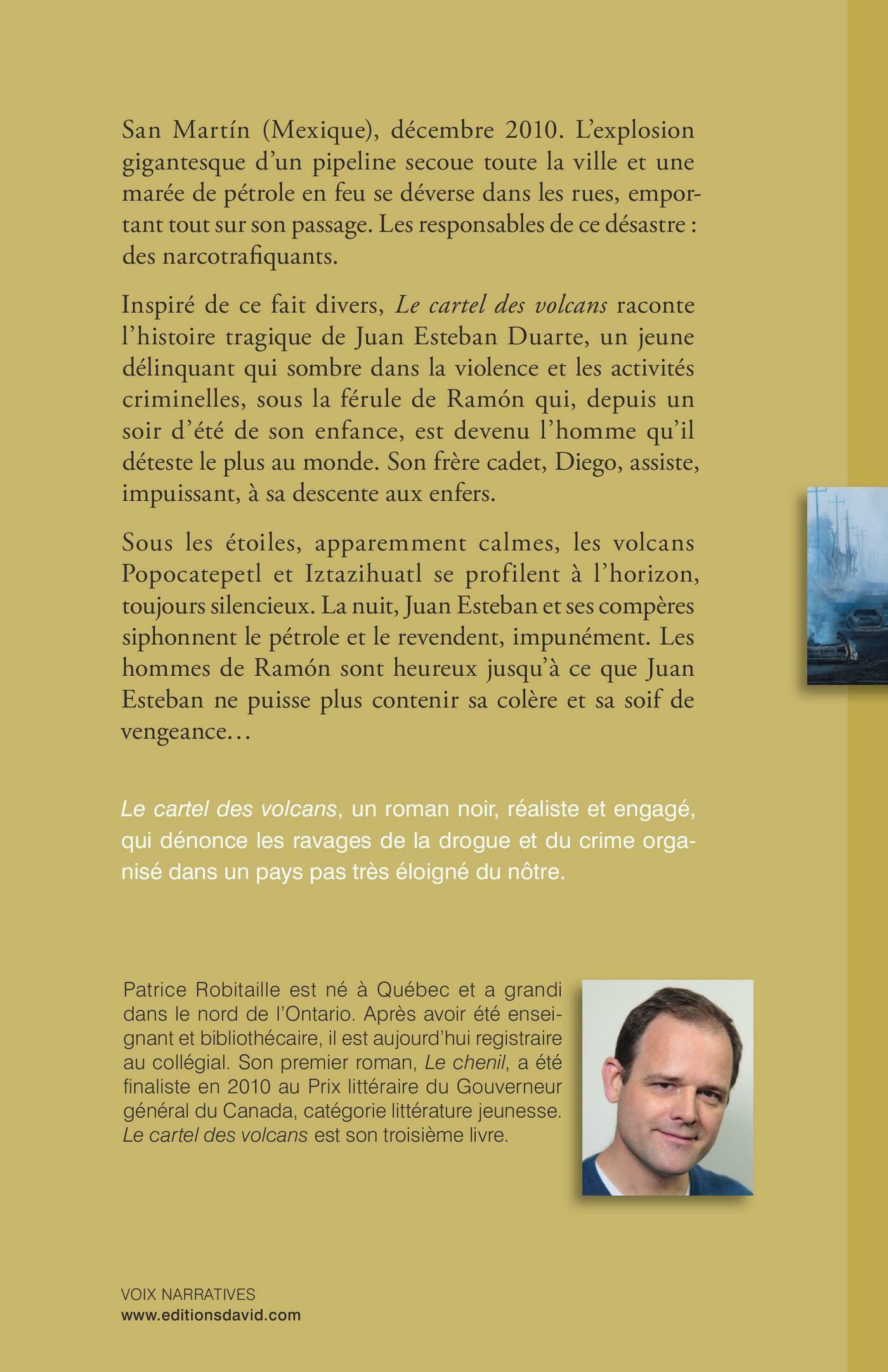 San Martín (Mexique), décembre 2010. L’explosion gigantesque d’un pipeline secoue toute la ville et une marée de pétrole en feu se déverse dans les rues, emportant tout sur son passage. Les responsables de ce désastre : des narcotrafiquants.Inspiré de ce fait divers, Le cartel des volcans raconte l’histoire tragique de Juan Esteban Duarte, un jeune délinquant qui sombre dans la violence et les activités criminelles, sous la férule de Ramón qui, depuis un soir d’été de son enfance, est devenu l’homme qu’il déteste le plus au monde. Son frère cadet, Diego, assiste, impuissant, à sa descente aux enfers.Sous les étoiles, apparemment calmes, les volcans Popocatepetl et Iztazihuatl se profilent à l’horizon, toujours silencieux. La nuit, Juan Esteban et ses compères siphonnent le pétrole et le revendent, impunément. Les hommes de Ramón sont heureux jusqu’à ce que Juan Esteban ne puisse plus contenir sa colère et sa soif de vengeance…Le cartel des volcans, un roman noir, réaliste et engagé, qui dénonce les ravages de la drogue et du crime organisé dans un pays pas très éloigné du nôtre.