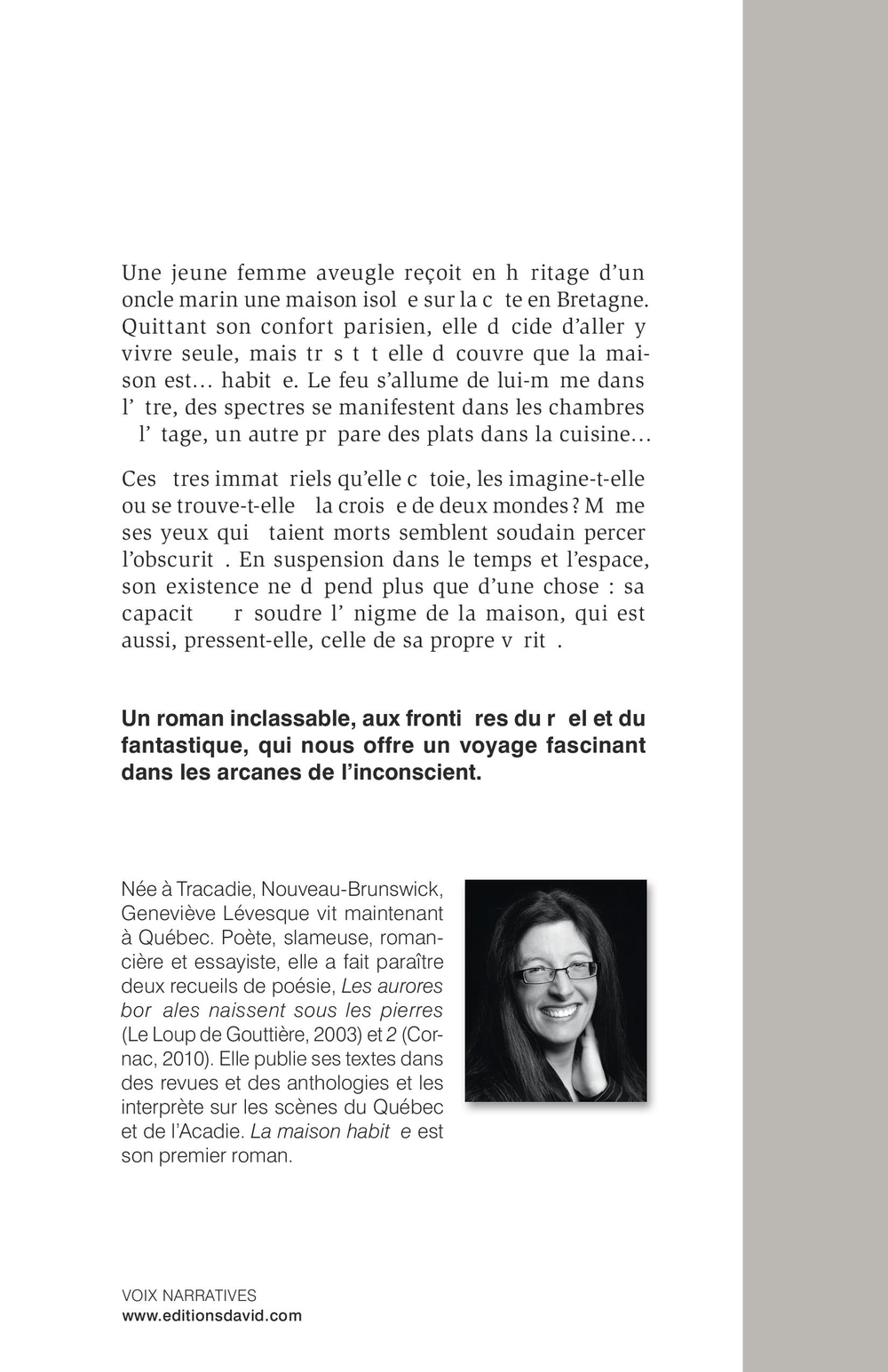 Une jeune femme aveugle reçoit en héritage d’un oncle marin une maison isolée sur la côte en Bretagne. Quittant son confort parisien, elle décide d’aller y vivre seule, mais très tôt elle découvre que la maison est… habitée. Le feu s’allume de lui-même dans l’âtre, des spectres se manifestent dans les chambres à l’étage, un autre prépare des plats dans la cuisine… Ces êtres immatériels qu’elle côtoie, les imagine-t‑elle ou se trouve-t-elle à la croisée de deux mondes ? Même ses yeux qui étaient morts semblent soudain percer l’obscurité. En suspension dans le temps et l’espace, son existence ne dépend plus que d’une chose : sa capacité à résoudre l’énigme de la maison, qui est aussi, pressent-elle, celle de sa propre vérité.Un roman inclassable, aux frontières du réel et du fantastique, qui nous offre un voyage fascinant dans les arcanes de l’inconscient.