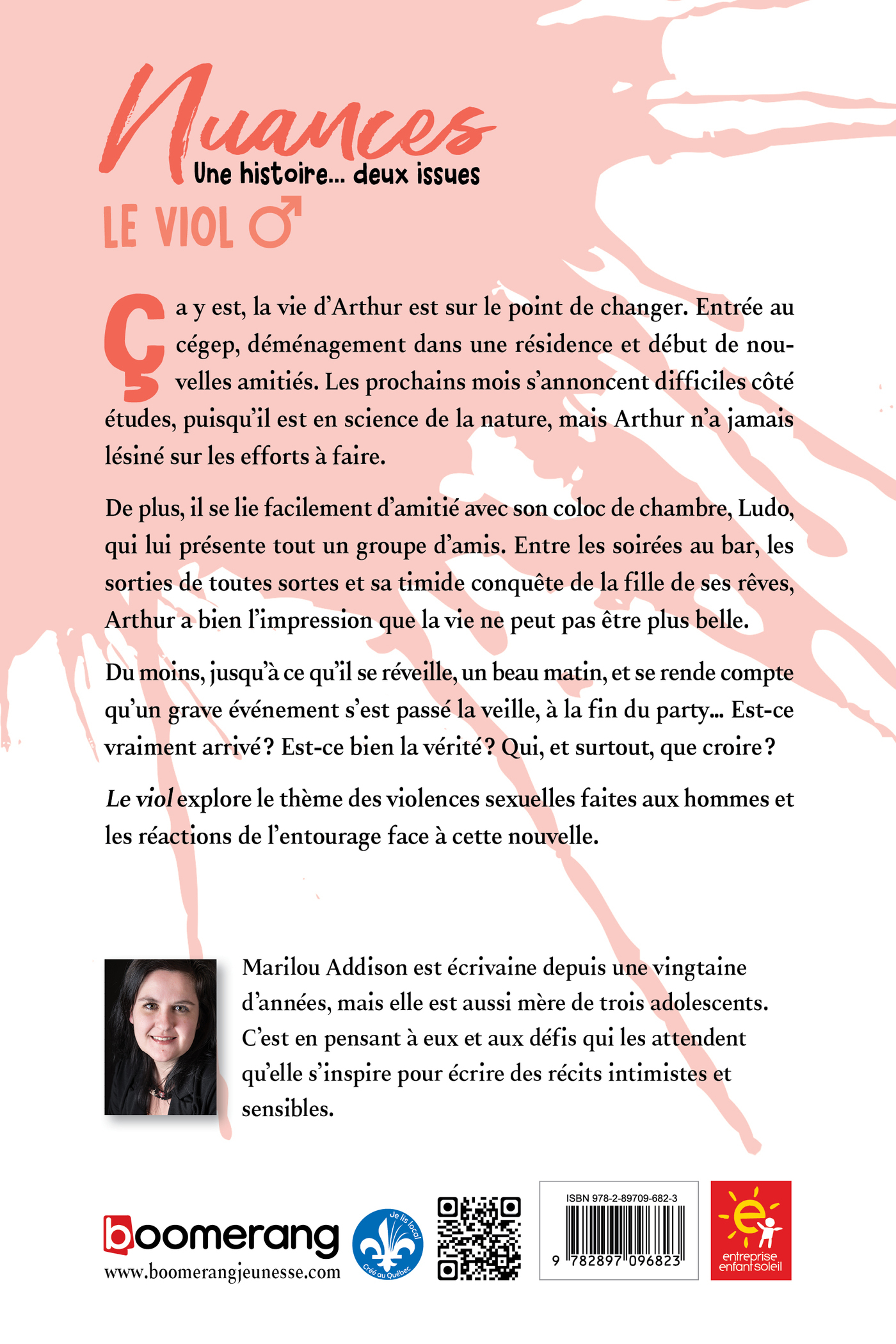 Ça y est, la vie d’Arthur est sur le point de changer. Entrée au cégep, déménagement dans une résidence et début de nouvelles amitiés. Les prochains mois s’annoncent difficiles côté études, puisqu’il est en science de la nature, mais Arthur n’a jamais lésiné sur les efforts à faire. De plus, il se lie facilement d’amitié avec son coloc de chambre, Ludo, qui lui présente tout un groupe d’amis. Entre les soirées au bar, les sorties de toutes sortes et sa timide conquête de la fille de ses rêves, Arthur a bien l’impression que la vie ne peut pas être plus belle. Du moins, jusqu’à ce qu’il se réveille, un beau matin, et se rende compte qu’un grave événement s’est passé la veille, à la fin du party... Est-ce vraiment arrivé ? Est-ce bien la vérité ? Qui, et surtout, que croire ? Le viol explore le thème des violences sexuelles faites aux hommes et les réactions de l’entourage face à cette nouvelle.