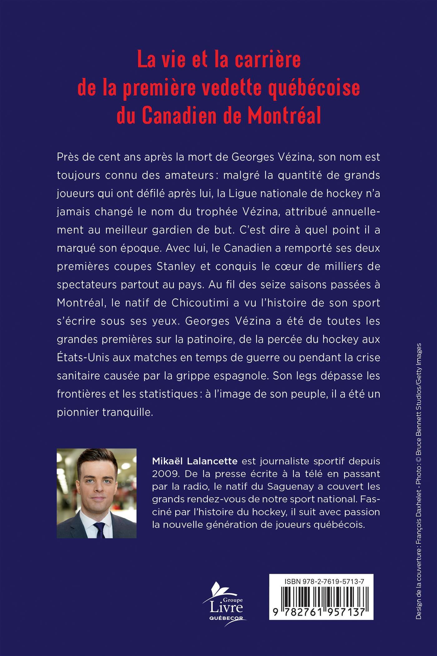 C'est dire à quel point il a marqué son époque. Avec lui, le Canadien a remporté ses deux premières coupes Stanley et conquis le cœur de milliers de spectateurs partout au pays. Au fil des seize saisons passées à Montréal, le natif de Chicoutimi a vu l'histoire de son sport s'écrire sous ses yeux. Georges Vézina a été de toutes les grandes premières sur la patinoire, de la percée du hockey aux États-Unis aux matches en temps de guerre ou pendant la crise sanitaire causée par la grippe espagnole.