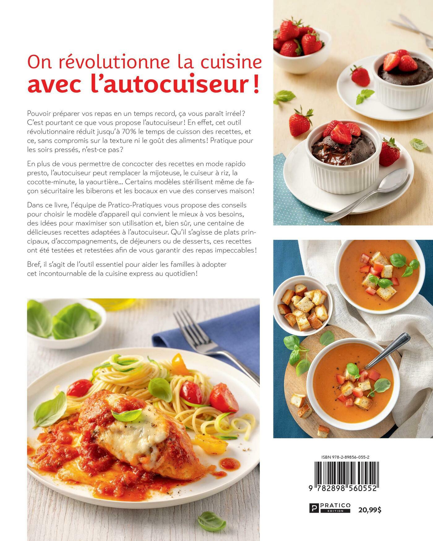 Pouvoir préparer vos repas en un temps record, ça vous paraît irréel ? C’est pourtant ce que vous propose l’autocuiseur ! En effet, cet outil révolutionnaire réduit jusqu’à 70 % le temps de cuisson des recettes, et ce, sans compromis sur la texture ni le goût des aliments ! Pratique pour les soirs pressés, n’est-ce pas ?En plus de vous permettre de concocter des recettes en mode rapido presto, l’autocuiseur peut remplacer la mijoteuse, le cuiseur à riz, la cocotte-minute, la yaourtière… Certains modèles stérilisent même de façon sécuritaire les biberons et les bocaux en vue des conserves maison !Dans ce livre, l’équipe de Pratico-Pratiques vous propose des conseils pour choisir le modèle d’appareil qui convient le mieux à vos besoins, des idées pour maximiser son utilisation et, bien sûr, une centaine de délicieuses recettes adaptées à l’autocuiseur. Qu’il s’agisse de plats principaux, d’accompagnements, de déjeuners ou de desserts, ces recettes ont été testées et retestées afin de vous garantir des repas impeccables !Bref, il s’agit de l’outil essentiel pour aider les familles à adopter cet incontournable de la cuisine express au quotidien !