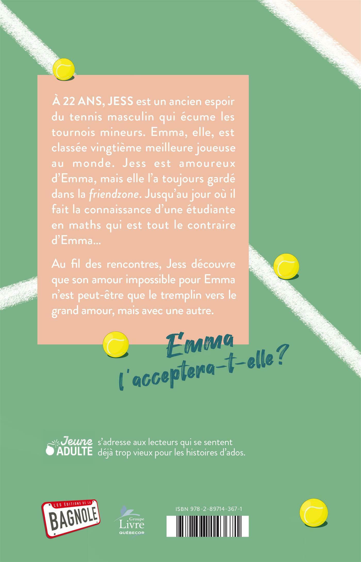 À 22 ans, Jess est un ancien espoir du tennis masculin qui écume les tournois mineurs. Emma, elle, est classée vingtième meilleure joueuse au monde. Jess est amoureux d'Emma, mais elle l'a toujours gardé dans la friendzone. Jusqu'au jour où il fait la connaissance d'une étudiante en maths qui est tout le contraire d'Emma…