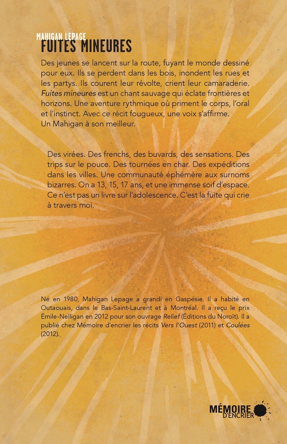 Jean Désy, Raôul Duguay, Carole Forget, Robert Giroux, François Godin, Daniel Grenier, Louis Hamelin, Natasha Kanapé Fontaine, Mahigan Lepage, William S. Messier, Benoit Bordeleau, André Carpentier, Paul Chamberland, Nicholas Dawson, Jean-Marc Desgent, Marc-André Moutquin, Julia Pawlowicz, Danny Plourde, Guy Sioui Durand, Aimée Verret, Nathalie Warren
