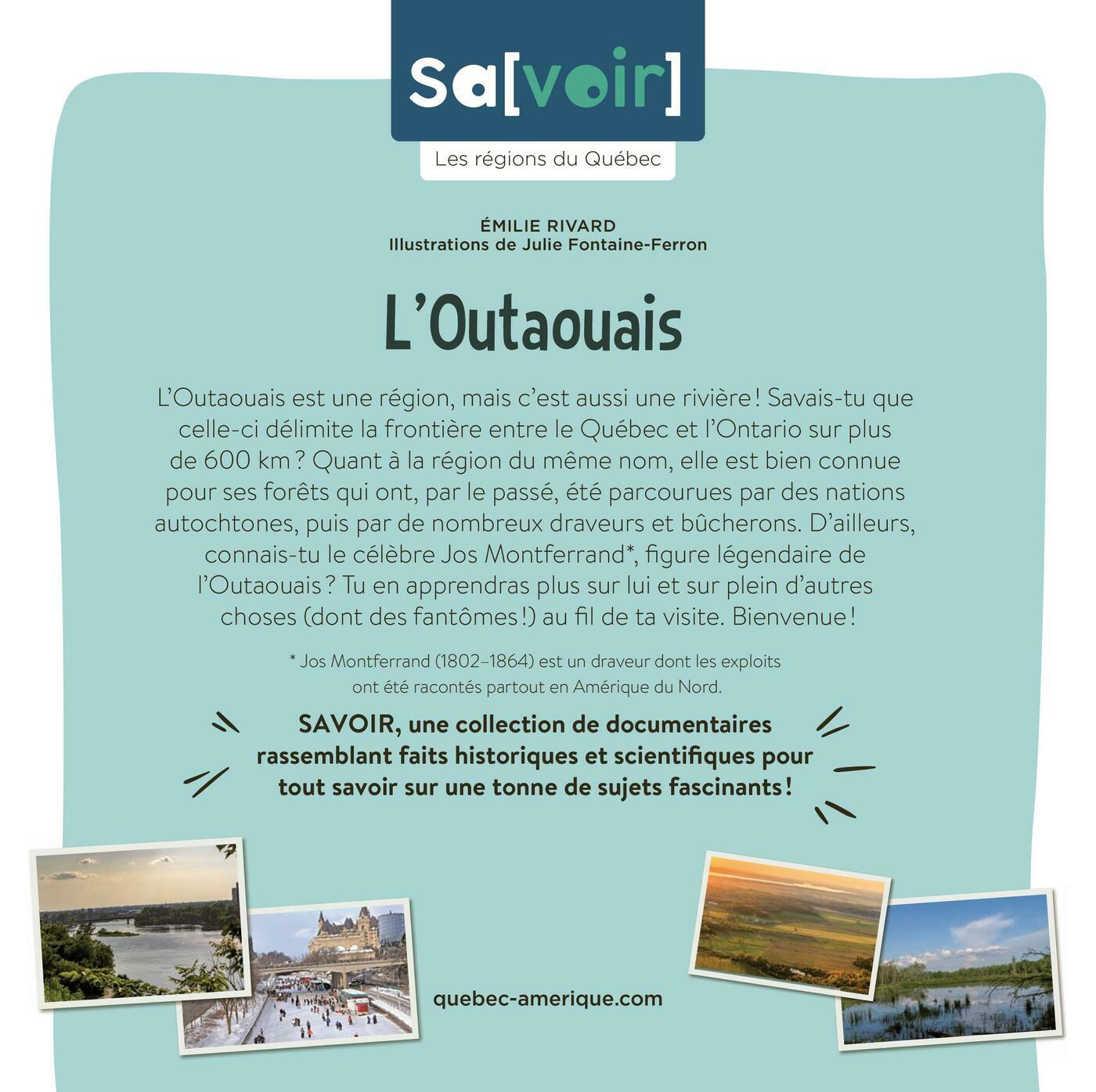 L’Outaouais est une région, mais c’est aussi une rivière! Savais-tu que celle-ci délimite la frontière entre le Québec et l’Ontario sur plus de 600 km? Quant à la région du même nom, elle est bien connue pour ses forêts qui ont, par le passé, été parcourues par des nations autochtones, puis par de nombreux draveurs et bûcherons. D’ailleurs, connais-tu le célèbre Jos Montferrand*, figure légendaire de l’Outaouais? Tu en apprendras plus sur lui et sur plein d’autres choses (dont des fantômes!) au fil de ta visite. Bienvenue! * Jos Montferrand (1802 – 1864) est un draveur dont les exploits ont été racontés partout en Amérique du Nord.SAVOIR, une collection de documentaires rassemblant faits historiques et scientifiques pour tout savoir sur une tonne de sujets fascinants !