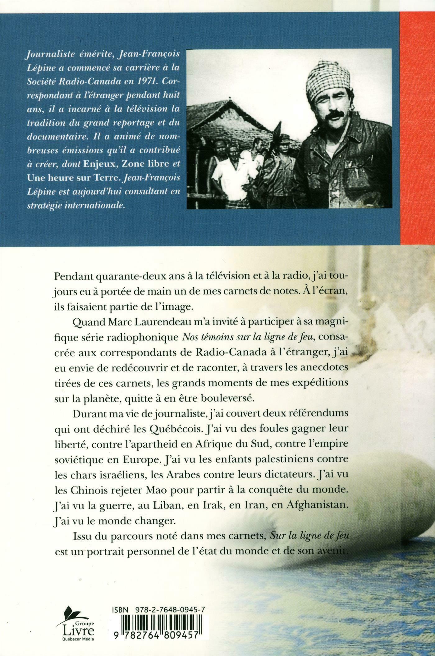 .Quand Marc Laurendeau m'a invité à participer à sa magnifique série radiophonique Nos témoins sur la ligne de feu, consacrée aux correspondants de Radio-Canada à l'étranger, j'ai eu envie de redécouvrir et de raconter, à travers les anecdotes tirées de ces carnets, les grands moments de mes expéditions sur la planète, quitte à en être bouleversé.
