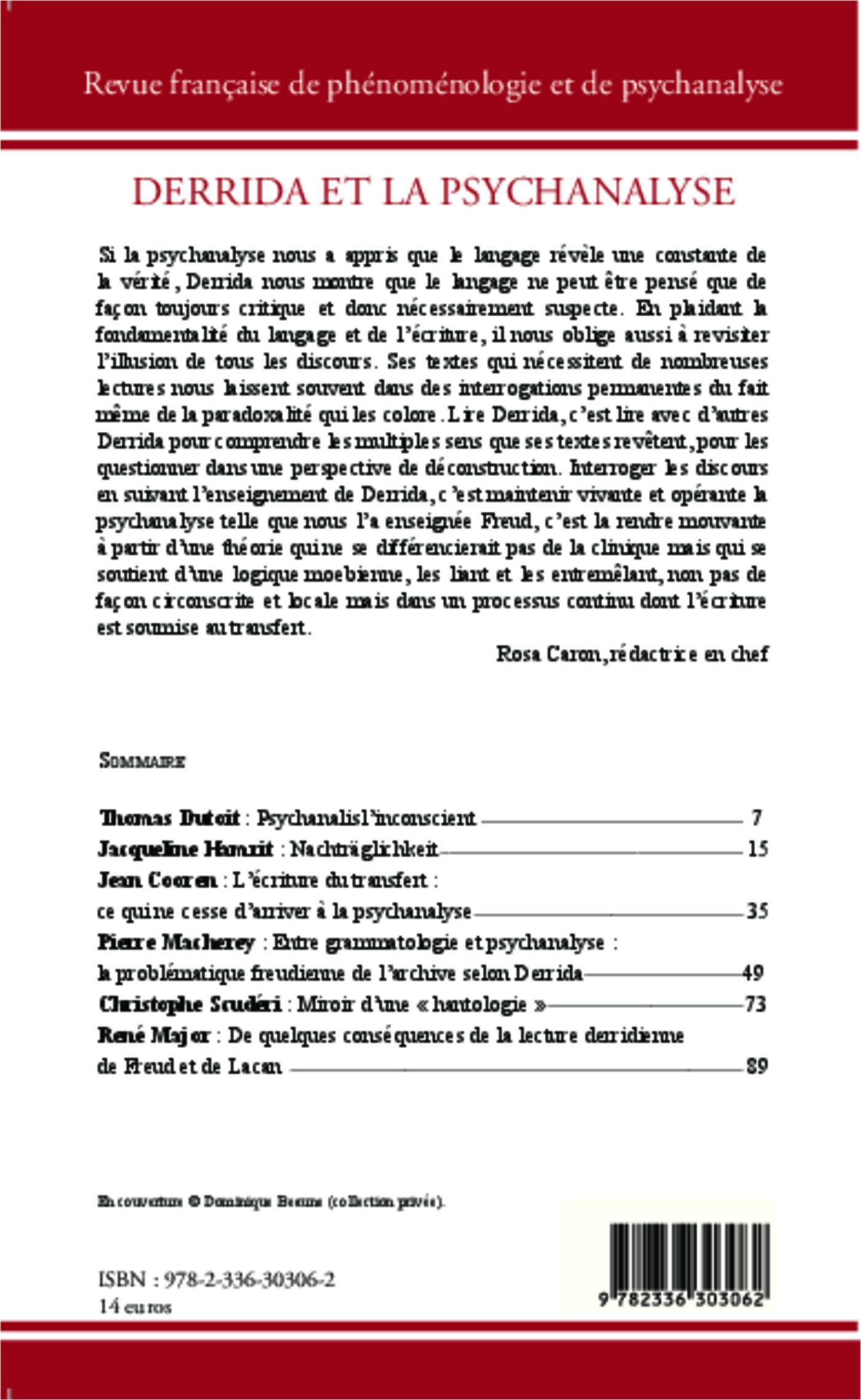 Ginette Michaud, Jean-Luc Nancy, Jacques Derrida, Michel Lisse, Geoffrey Bennington, Georges Leroux, Rodolphe Gasché, Claude Lévesque, Catherine Malabou, Patrick Poirier, René Major, Jean-Michel Rabaté, Isabelle Décarie, Régine Robin, Alexis Nouss, Hélène Cixous
