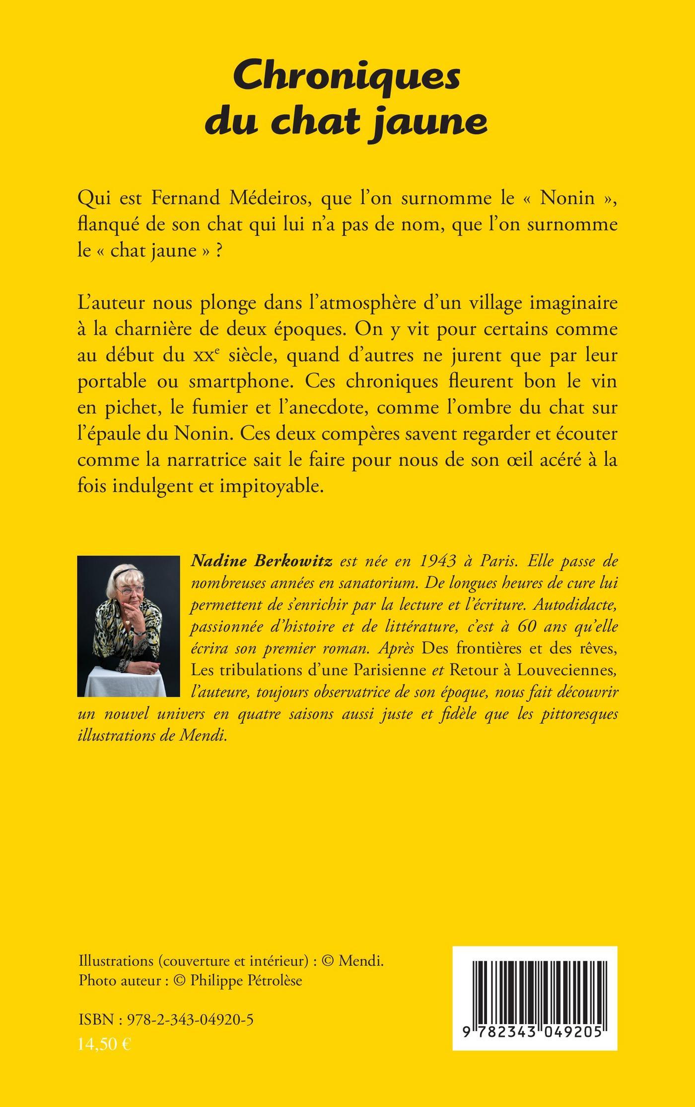 L'auteur nous plonge dans l'atmosphère d'un village imaginaire à la charnière de deux époques. On y vit pour certains comme au début du XXe siècle, quand d'autres ne jurent que par leur portable ou smartphone. Ces chroniques fleurent bon le vin en pichet, le fumier et l'anecdote, comme l'ombre du chat sur l'épaule de Nonin. Ces deux compères savent regarder et écouter comme la narratrice siat le faire pour nous de son oeil acéré à la fois indulgent et impitoyable.