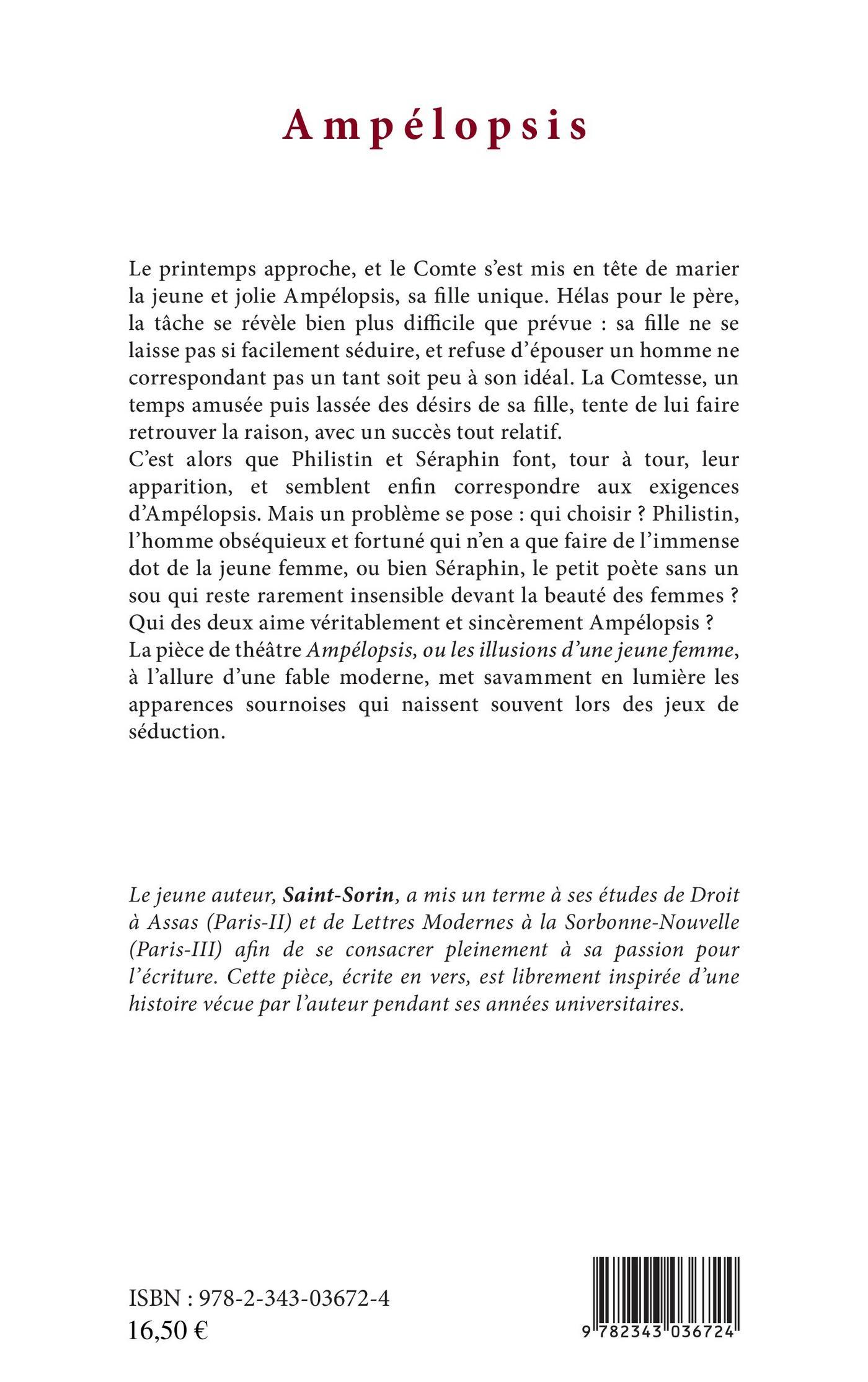 Le printemps approche, et le Comte s'est mis en tête de marier la jeune et jolie Ampélopsis, sa fille unique. Hélas pour le père, la tâche se révèle bien plus difficile que prévue: sa fille ne laisse pas si facilement séduire, et refuse d'épouser un homme ne correspondant pas un tant soit peu à son idéal. C'est alors que Philistin et Sépharin font, tour à tour leur apparition. Mais un problème se pose : qui choisir ? Philistin, l'homme obséquieux et fortuné qui n'en n'a que faire de l'immense dot de la jeune femme, ou bien Sépharin, le petit poète sans un sou qui reste rarement insensible devant la beauté des femmes ? Qui des deux aime véritablement et sincèrement Ampélopsis ?
