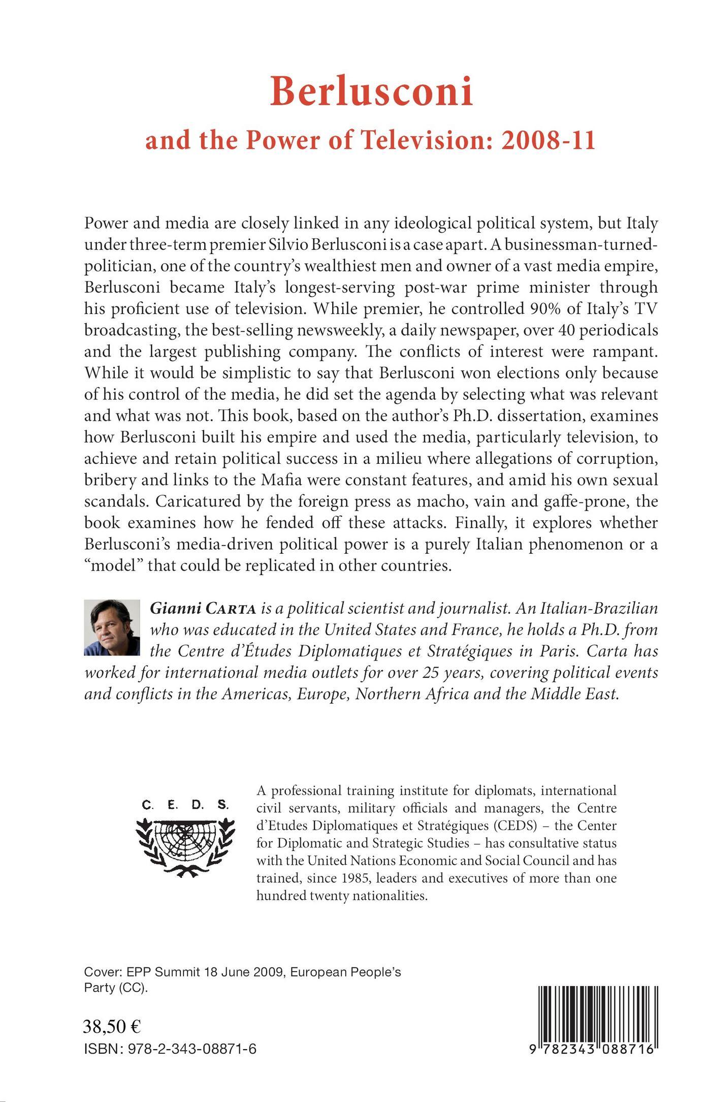 Power and media are closely linked in any ideological political system, but Italy under three-term premier Silvio Berlusconi is a case apart. A businessman-turned-politician and owner of a vast media empire, Berlusconi became Italy's longest-serving post-war prime minister through his proficient use of television. This book examines how Berlusconi built his empire and used the media to achieve and retain political success in a milieu where allegations of corruption, bribery and links to the Mafia were constant features, and amid his own sexual scandals. Finally, the author wonders if Berlusconi's media-driven political power is a model that could be replicated in other countries.