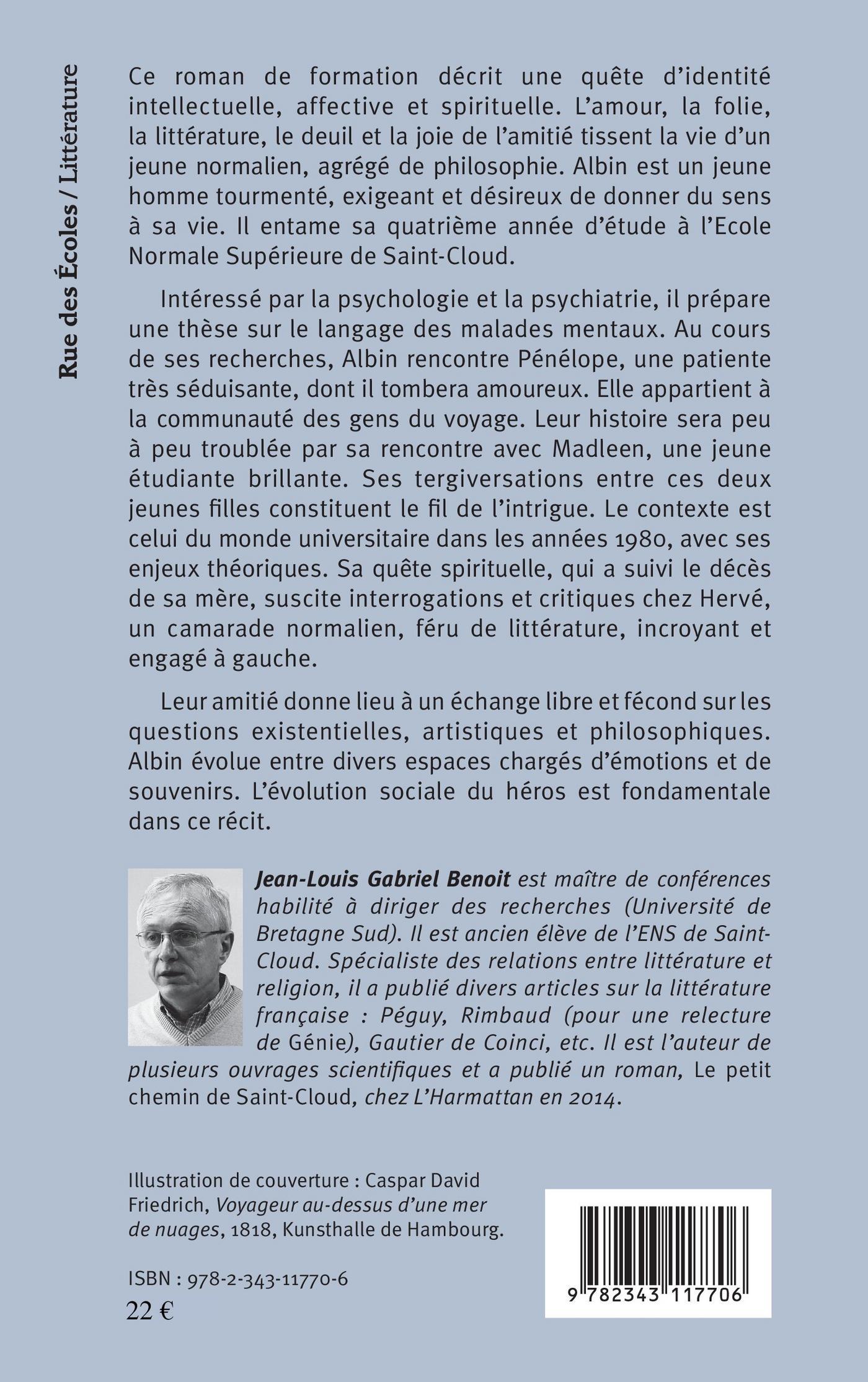 Ce roman de formation décrit une quête d'identité intellectuelle, affective et spirituelle. L'amour, la folie, la littérature, le deuil et la joie de l'amitié tissent la vie d'un jeune normalien, agrégé de philosophie. Albin est un jeune homme tourmenté, exigeant et désireux de donner du sens à sa vie. Étudiant à l'Ecole Normale Supérieure de Saint-Cloud, il prépare une thèse sur le langage des malades mentaux. Entre rencontres amoureuses et amicales, Albin se dévoile dans divers espaces chargés d'émotions et de souvenirs. L'évolution sociale du héros est fondamentale dans ce récit.
