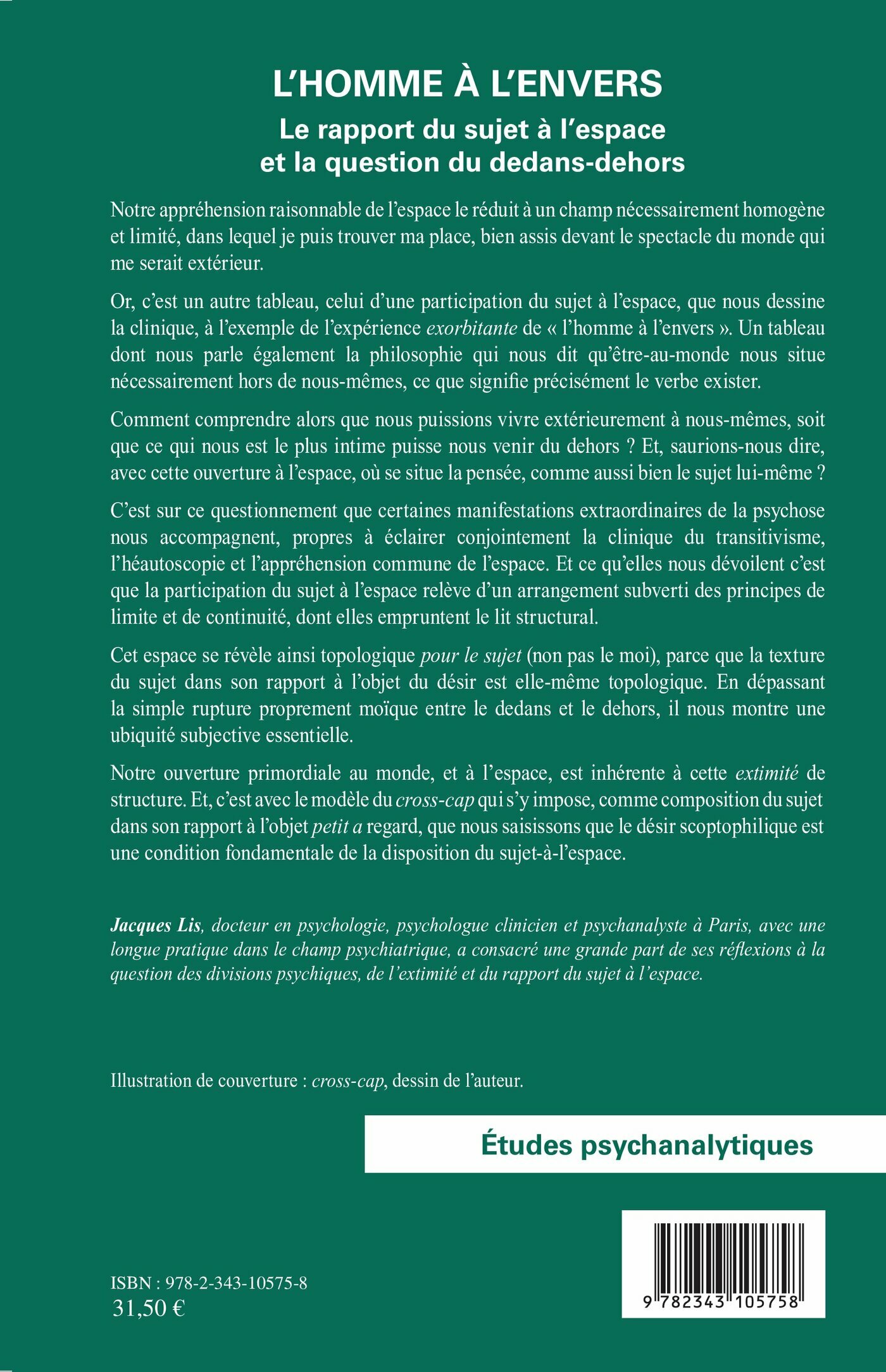 Nous existons extérieurement à nous-mêmes ! Voilà le constat inouï que montre la clinique de notre rapport à l’espace, comme aussi bien l’art avec la peinture, et ce dont nous parlent certaines conceptions philosophiques. Dès lors où se situe la pensée, et où se situe le sujet lui-même ? Certaines manifestations extraordinaires de la psychose, par exemple, nous dévoilent que la participation du sujet à l'espace relève d'un arrangement subverti des principes de limite et de continuité. Le dépassement de la rupture moïque entre le dedans et le dehors, qui s’y fait jour, est le fait d’une ubiquité subjective essentielle. C’est cette extimité foncière qu’articule la psychanalyse avec le modèle structural du cross-cap. La présente étude en parcourt le procès, accompagné de la monographie d’un cas remarquable de transitivisme, où s’impose l’idée que notre être-au-monde nous ouvre, en tant que sujet, à un espace proprement topologique.