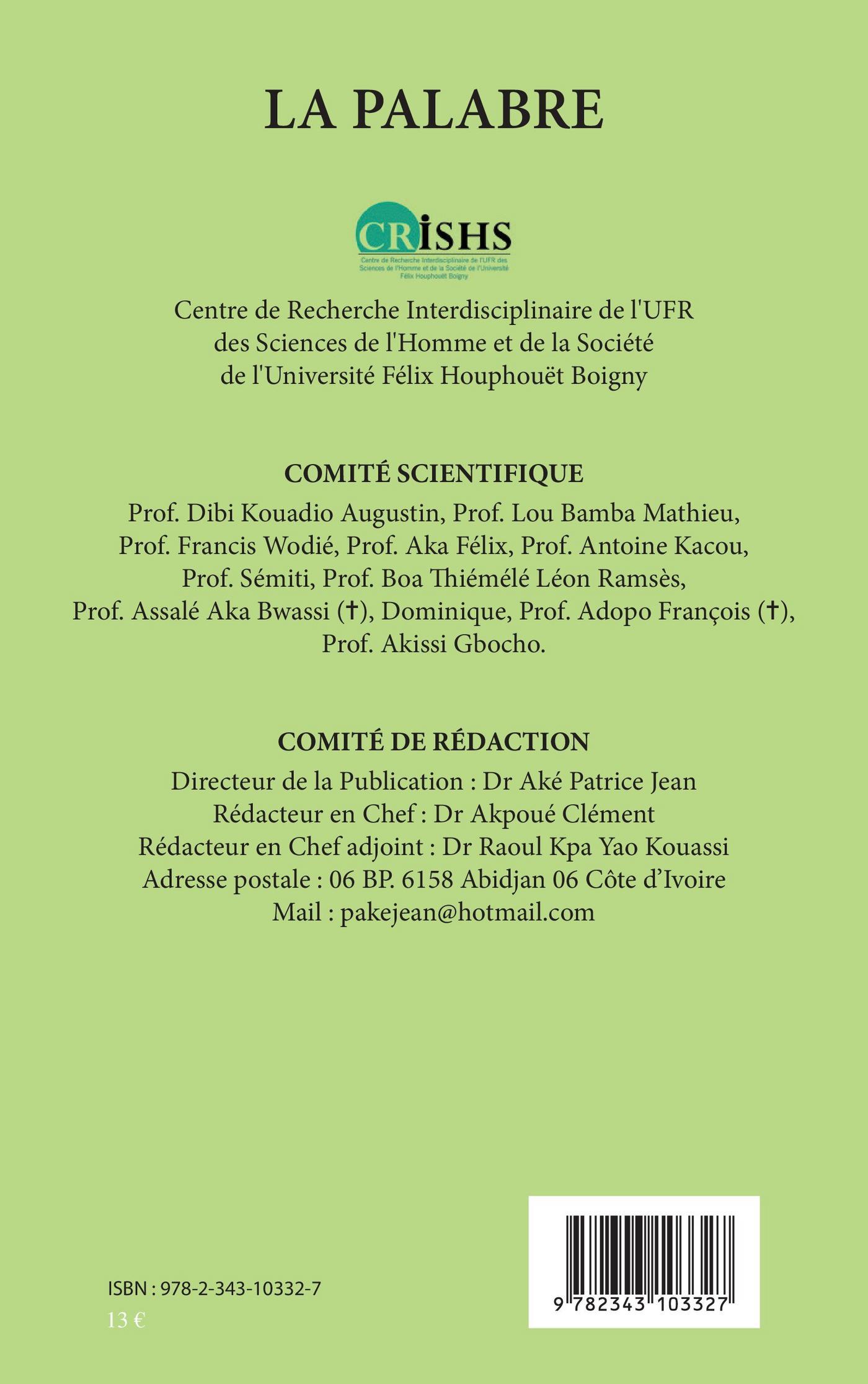 EAN13 (papier) : 9782343103327