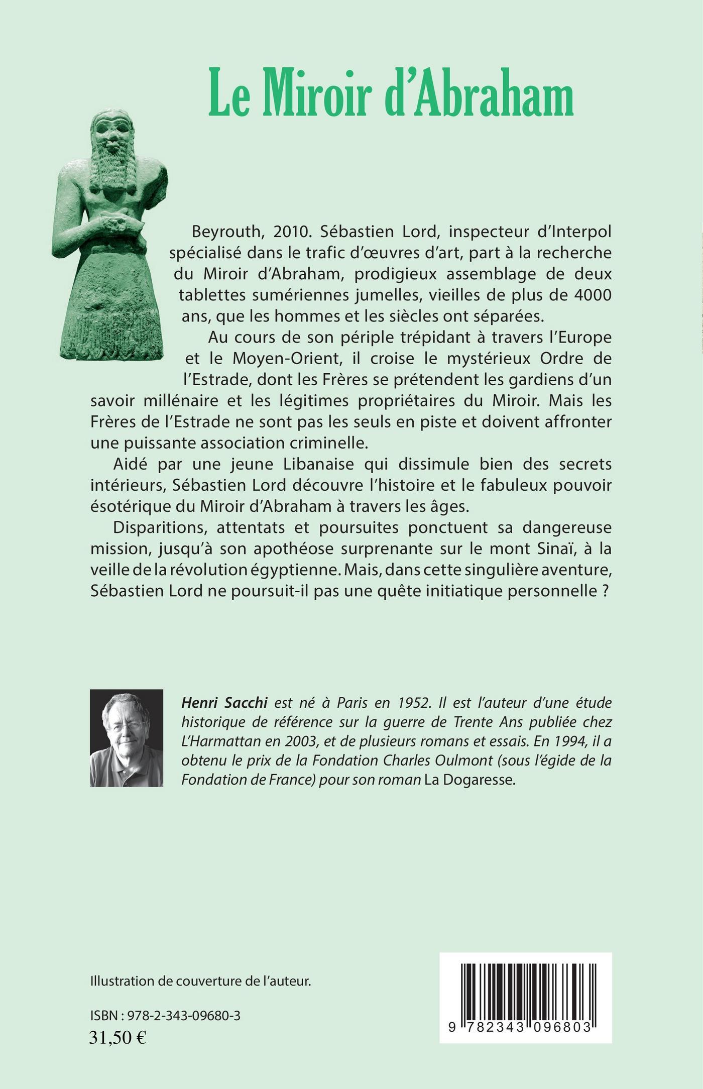 Beyrouth, 2010. Sébastien Lord, inspecteur d'Interpol spécialisé dans le trafic d'oeuvres d'art, part à la recherche du Miroir d'Abraham, prodigieux assemblage de deux tablettes sumériennes jumelles, vieilles de plus de 4000 ans, que les hommes et les siècles ont séparées. Au cours de son périple trépidant à travers l'Europe et le Moyen-Orient, il croise les mystérieux Frères de l'Ordre de l'Estrade et doit affronter une puissante association criminelle. Aidé par une jeune Libanaise qui dissimule bien des secrets, Sébastien Lord découvre l'histoire et les fabuleux pouvoirs ésotériques du Miroir. Disparitions, attentats et poursuites ponctuent sa dangereuse mission, jusqu'à son apothéose sur le mont Sinaï, à la veille de la révolution égyptienne. Mais, dans cette singulière aventure, Sébastien Lord ne poursuit-il pas une quête initiatique personnelle ?