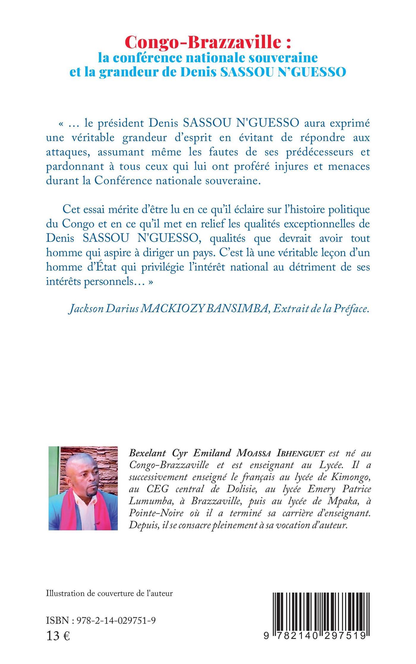 « ...le président Denis SASSOU N'GUESSO aura exprimé une véritable grandeur d'esprit en évitant de répondre aux attaques, assumant même les fautes de ses prédécesseurs et pardonnant à tous ceux qui lui ont proféré injures et menaces durant la Conférence nationale souveraine. Cet essai mérite d'être lu en ce qu'il éclaire sur l'histoire politique du Congo et en ce qu'il met en relief les qualités exceptionnelles de Denis SASSOU N'GUESSO, qualités que devrait avoir tout homme qui aspire à diriger un pays. C'est là une véritable leçon d'un homme d'État qui privilégie l'intérêt national au détriment de ses intérêts personnels...»