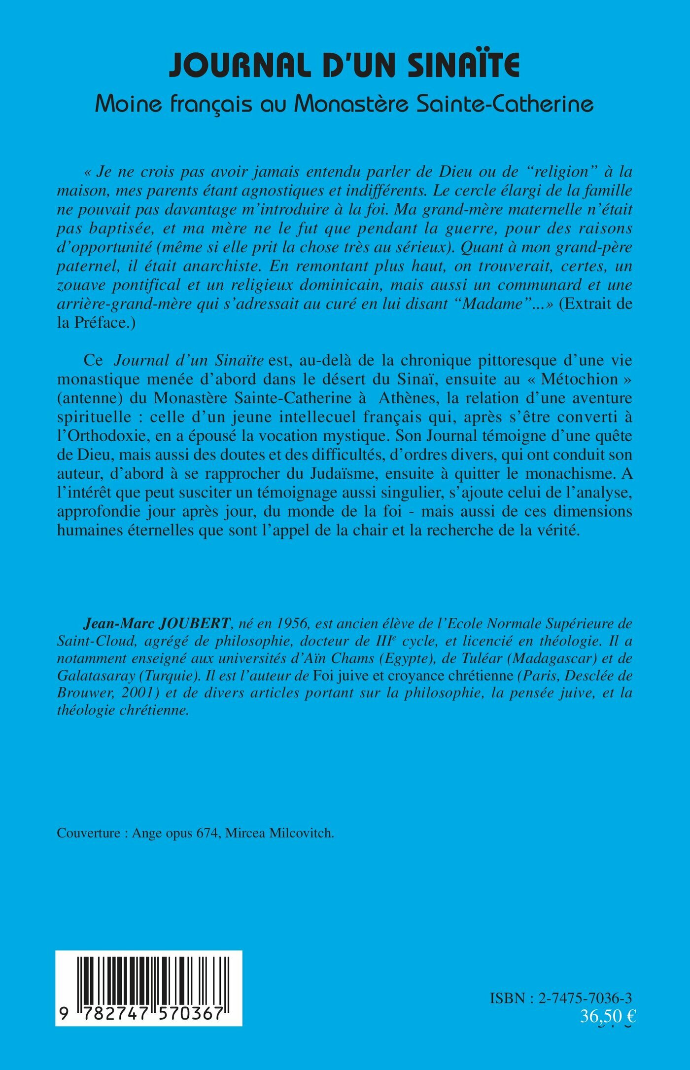 Au-delà de la chronique pittoresque d'une vie monastique dans le désert du Sinaï puis au monastère Sainte-Catherine à Athènes, voici la relation d'une aventure spirituelle. Ce journal singulier témoigne d'une quête de Dieu, mais aussi des doutes et des difficultés, qui ont conduit son auteur, d'abord à se rapprocher du Judaïsme, ensuite à quitter le monachisme. C'est aussi l'analyse, approfondie jour après jour, du monde de la foi - mais aussi de ces dimensions humaines éternelles que sont l'appel de la chair et la recherche de la vérité.