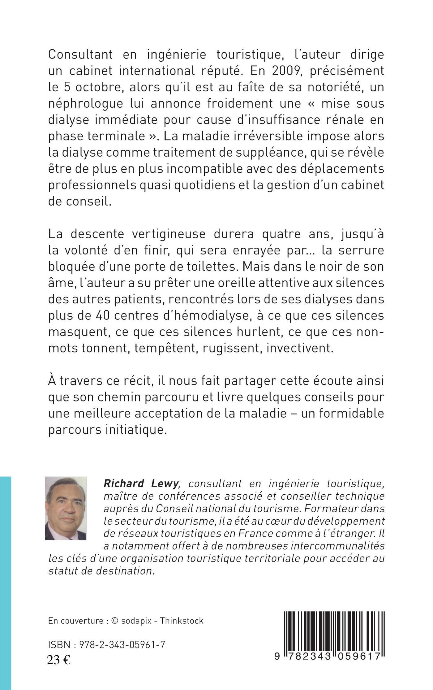En 2009, un néphrologue annonce à Richard Lewy une "mise sous dialyse immédiate pour cause d'insuffisance rénale en phase terminale". La maladie irréversible impose alors la dialyse comme traitement de suppléance. Lors de ses séances de dialyse, l'auteur a su prêter une oreille attentive aux silences des autres patients rencontrés : à travers ce récit, il nous fait partager cette écoute ainsi que son chemin parcouru et livre quelques conseils pour une meilleure acceptation de la maladie - un formidable parcours initiatique.