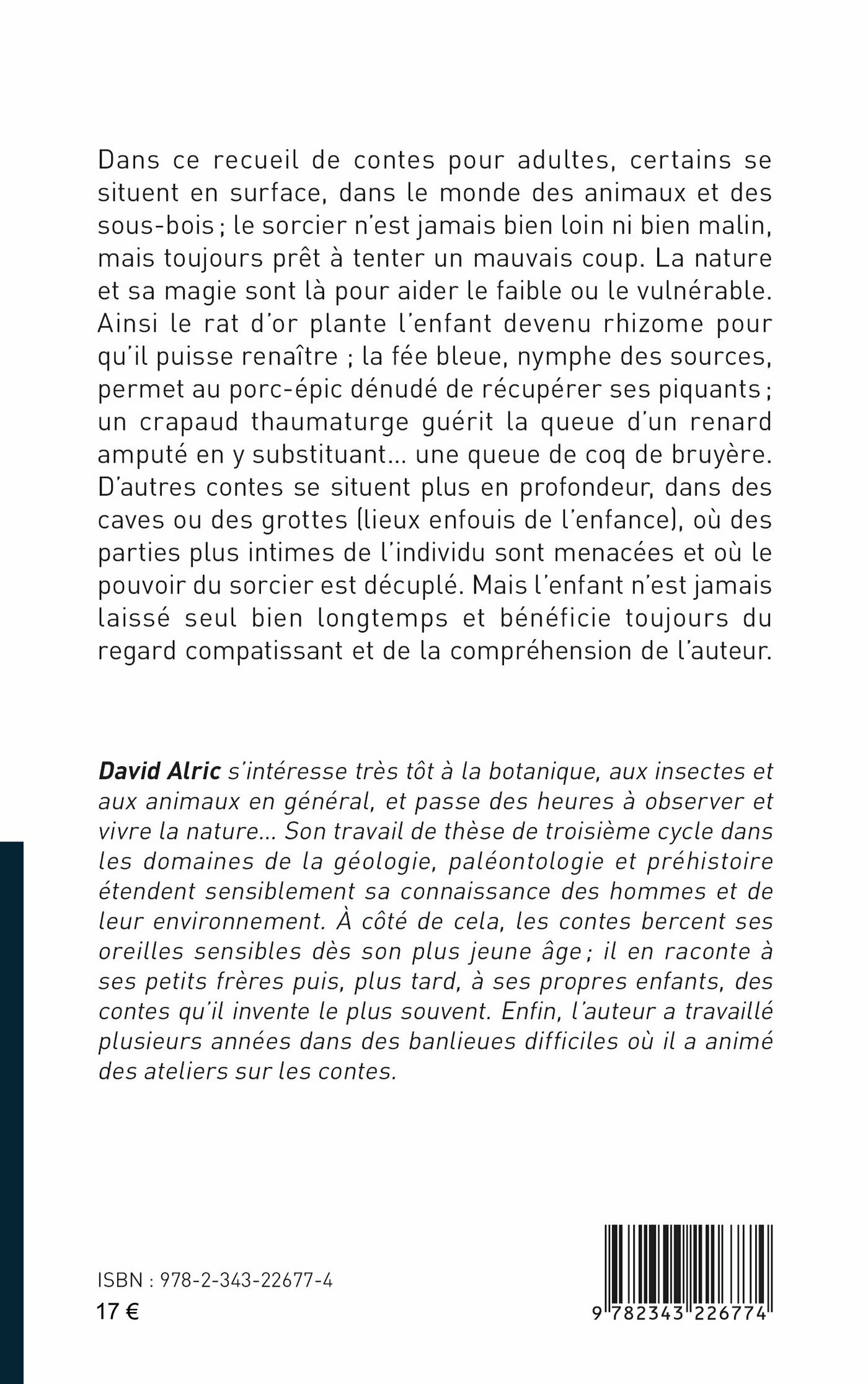 Dans ce recueil de contes pour adultes, certains se situent en surface. La nature et sa magie sont là pour aider le faible ou le vulnérable. Ainsi le rat d’or plante l’enfant devenu rhizome pour qu’il puisse renaître ; la fée bleue, nymphe des sources, permet au porc-épic dénudé de récupérer ses piquants ; un crapaud thaumaturge guérit la queue d’un renard amputé en y substituant... une queue de coq de bruyère. D’autres contes se situent plus en profondeur, dans des caves ou des grottes (lieux enfouis de l’enfance), où des parties plus intimes de l’individu sont menacées et où le pouvoir du sorcier est décuplé.