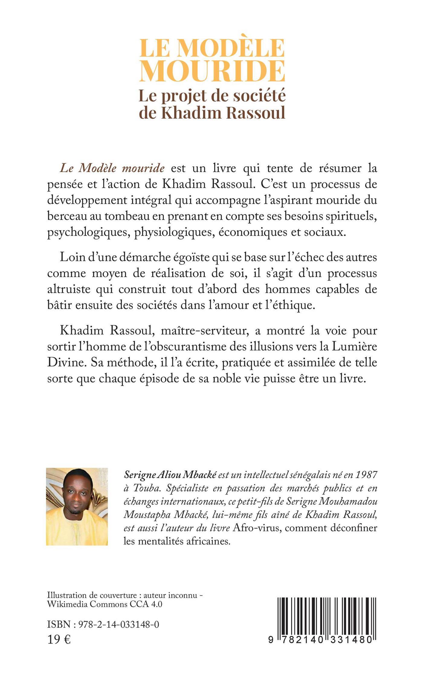 Ce livre tente de résumer la pensée et l'action de Khadim Rassoul. C'est un processus de développement intégral qui accompagne l'aspirant mouride du berceau au tombeau en prenant en compte ses besoins spirituels, psychologiques, physiologiques, économiques et sociaux. Loin d'une démarche égoïste qui se base sur l'échec des autres comme moyen de réalisation de soi, il s'agit d'un processus altruiste qui construit tout d'abord des hommes capables de bâtir ensuite des sociétés dans l'amour et l'éthique. Khadim Rassoul, maître-serviteur, a montré la voie pour sortir l'homme de l'obscurantisme des illusions vers la Lumière Divine. Sa méthode, il l'a écrite, pratiquée et assimilée de telle sorte que chaque épisode de sa noble vie puisse être un livre.