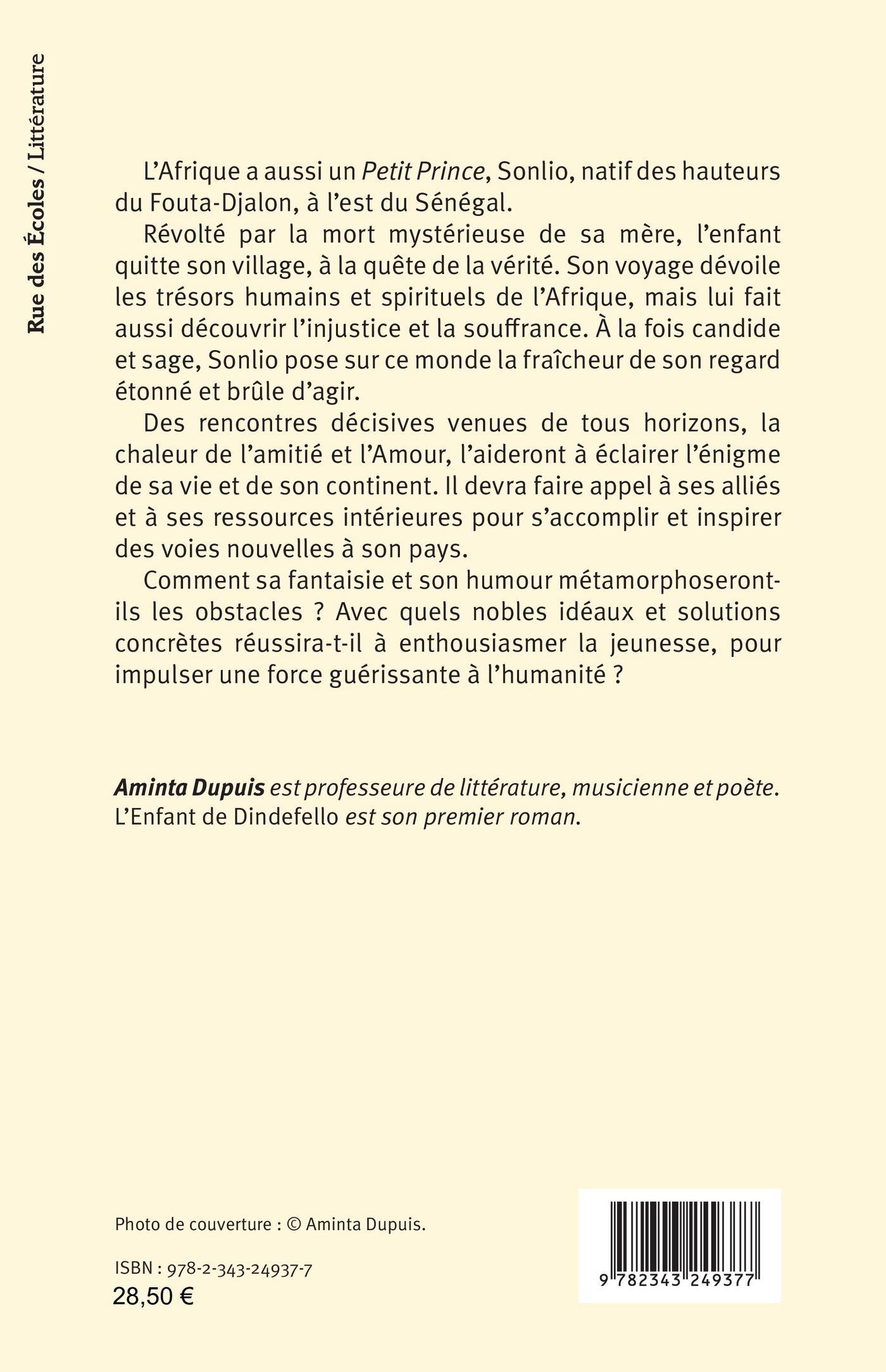 L’Afrique a aussi un Petit Prince, Sonlio, natif des hauteurs du Fouta-Djalon, à l’est du Sénégal. Révolté par la mort mystérieuse de sa mère, l’enfant quitte son village, à la quête de la vérité. Son voyage dévoile les trésors humains et spirituels de l’Afrique, mais lui fait aussi découvrir l’injustice et la souffrance. À la fois candide et sage, Sonlio pose sur ce monde la fraîcheur de son regard étonné et brûle d’agir. Des rencontres décisives venues de tous horizons, la chaleur de l’amitié et l’Amour, l’aideront à éclairer l’énigme de sa vie et de son continent. Il devra faire appel à ses alliés et à ses ressources intérieures pour s’accomplir et inspirer des voies nouvelles à son pays. Comment sa fantaisie et son humour métamorphoseront-ils les obstacles ? Avec quels nobles idéaux et solutions concrètes réussira-t-il à enthousiasmer la jeunesse, pour impulser une force guérissante à l’humanité ?
