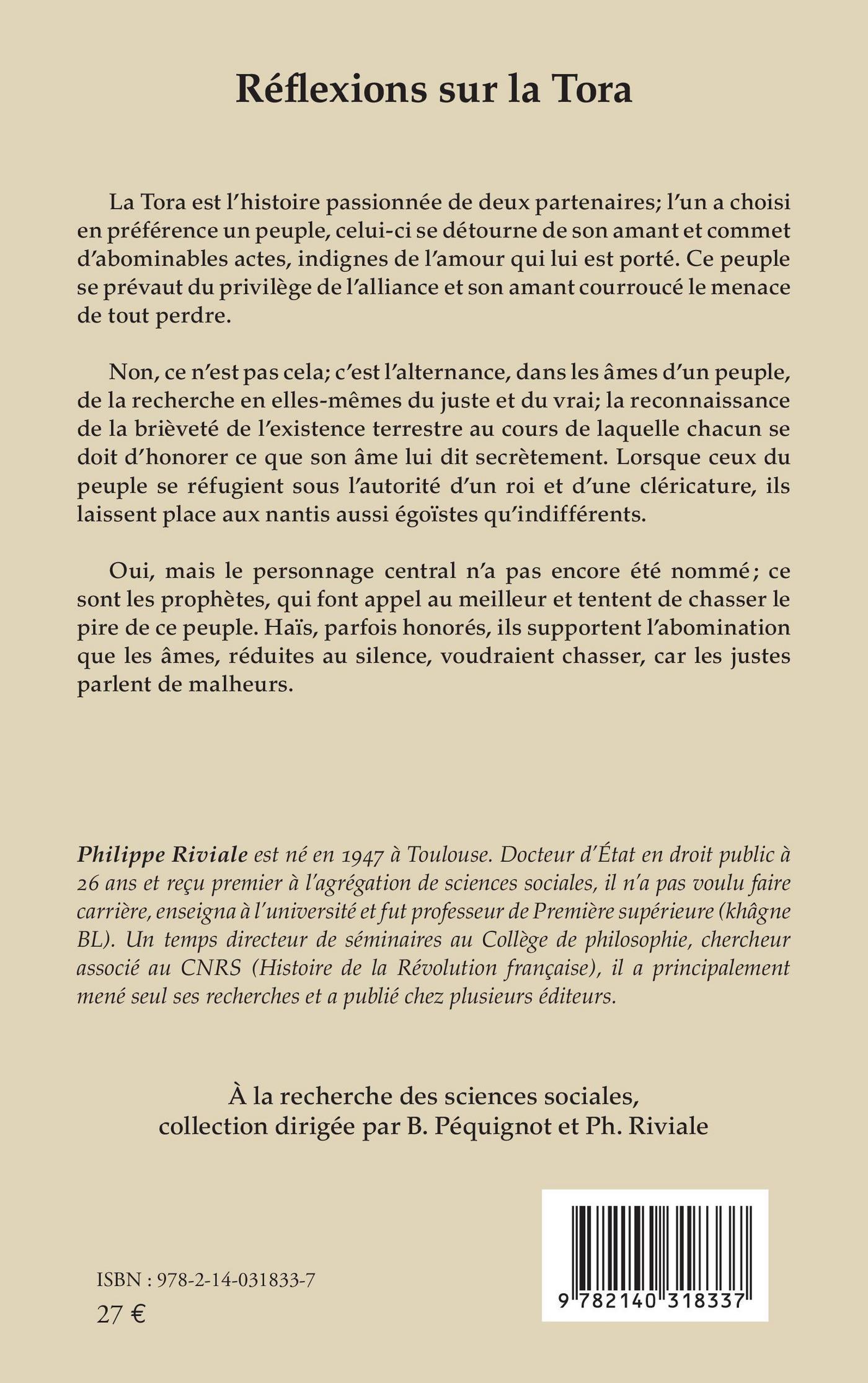 La Tora est l'histoire passionnée de deux partenaires; l'un a choisi en préférence un peuple, celui-ci se détourne de son amant et commet d'abominables actes, indignes de l'amour qui lui est porté. Ce peuple se prévaut du privilège de l'alliance et son amant courroucé le menace de tout perdre. Non, ce n'est pas cela; c'est l'alternance, dans les âmes d'un peuple, de la recherche en elles-mêmes du juste et du vrai; la reconnaissance de la brièveté de l'existence terrestre au cours de laquelle chacun se doit d'honorer ce que son âme lui dit secrètement. Lorsque ceux du peuple se réfugient sous l'autorité d'un roi et d'une cléricature, ils laissent place aux nantis aussi égoïstes qu'indifférents. Oui, mais le personnage central n'a pas encore été nommé ; ce sont les prophètes, qui font appel au meilleur et tentent de chasser le pire de ce peuple. Haïs, parfois honorés, ils supportent l'abomination que les âmes, réduites au silence, voudraient chasser, car les justes parlent de malheurs.