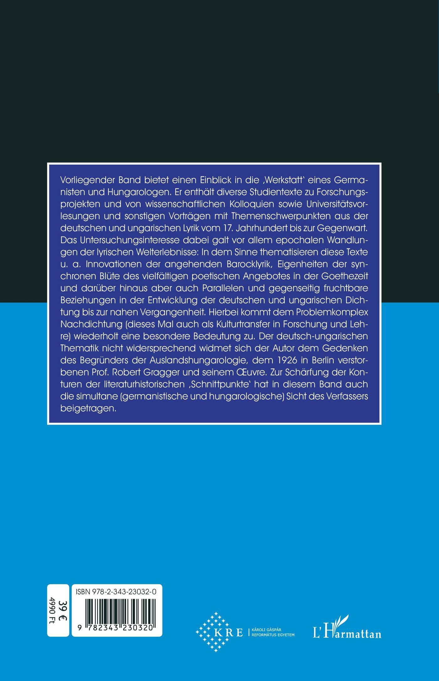 Vorliegender Band bietet einen Einblick in die ,Werkstatt‘ eines Germanisten und Hungarologen. Er enthält diverse Studientexte zu Forschungsprojekten und von wissenschaftlichen Kolloquien sowie Universitätsvorlesungen und sonstigen Vorträgen mit Themenschwerpunkten aus der deutschen und ungarischen Lyrik vom 17. Jahrhundert bis zur Gegenwart. Das Untersuchungsinteresse dabei galt vor allem epochalen Wandlungen der lyrischen Welterlebnisse: In dem Sinne thematisieren diese Texte u. a. Innovationen der angehenden Barocklyrik, Eigenheiten der synchronen Blüte des vielfältigen poetischen Angebotes in der Goethezeit und darüber hinaus aber auch Parallelen und gegenseitig fruchtbare Beziehungen in der Entwicklung der deutschen und ungarischen Dichtung bis zur nahen Vergangenheit. Hierbei kommt dem Problemkomplex Nachdichtung (dieses Mal auch als Kulturtransfer in Forschung und Lehre) wiederholt eine besondere Bedeutung zu. Der deutsch-ungarischen Thematik nicht widersprechend widmet sich der Autor dem Gedenken des Begründers der Auslandshungarologie, dem 1926 in Berlin verstorbenen Prof. Robert Gragger und seinem OEuvre. Zur Schärfung der Konturen der literaturhistorischen ,Schnittpunkte‘ hat in diesem Band auch die simultane (germanistische und hungarologische) Sicht des Verfassers beigetragen.