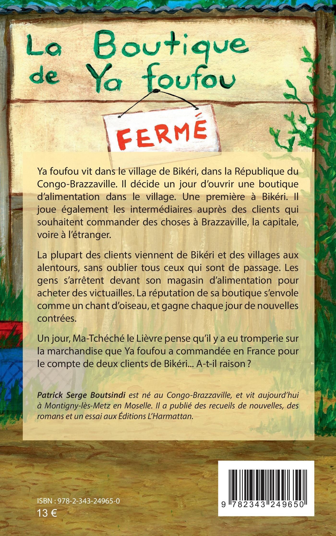 Ya foufou vit dans le village de Bikéri, dans la République du Congo-Brazzaville. Il décide un jour d’ouvrir une boutique d’alimentation dans le village. Une première à Bikéri. Il joue également les intermédiaires auprès des clients qui souhaitent commander des choses à Brazzaville, la capitale, voire à l’étranger. La plupart des clients viennent de Bikéri et des villages auxalentours, sans oublier tous ceux qui sont de passage. Les gens s’arrêtent devant son magasin d’alimentation pour acheter des victuailles. La réputation de sa boutique s’envole comme un chant d’oiseau, et gagne chaque jour de nouvelles contrées.Un jour, Ma-Tchéché le Lièvre pense qu’il y a eu tromperie sur la marchandise que Ya foufou a commandée en France pour le compte de deux clients de Bikéri... A-t-il raison ?