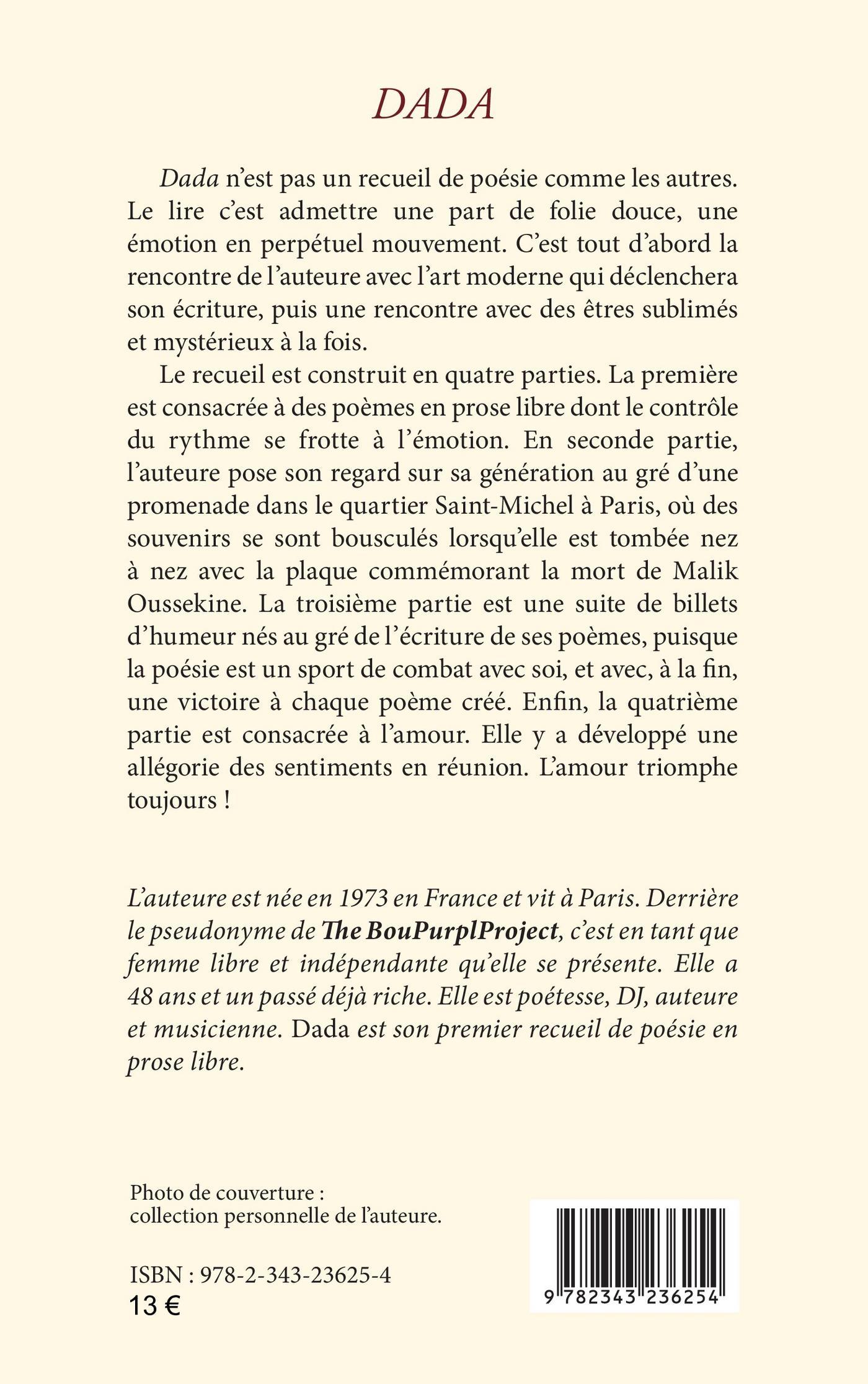 Ce recueil est construit en quatre parties. La première est consacrée à des poèmes en prose libre dont le contrôle du rythme se frotte à l’émotion. En seconde partie, l’auteure pose son regard sur sa génération au gré d’une promenade dans le quartier Saint-Michel à Paris, où des souvenirs se sont bousculés lorsqu’elle est tombée nez à nez avec la plaque commémorant la mort de Malik Oussekine. La troisième partie est une suite de billets d’humeur nés au gré de l’écriture de ses poèmes, puisque la poésie est un sport de combat avec soi, et avec, à la fin, une victoire à chaque poème créé. Enfin, la quatrième partie est consacrée à l’amour. Elle y a développé une allégorie des sentiments en réunion. L’amour triomphe toujours !