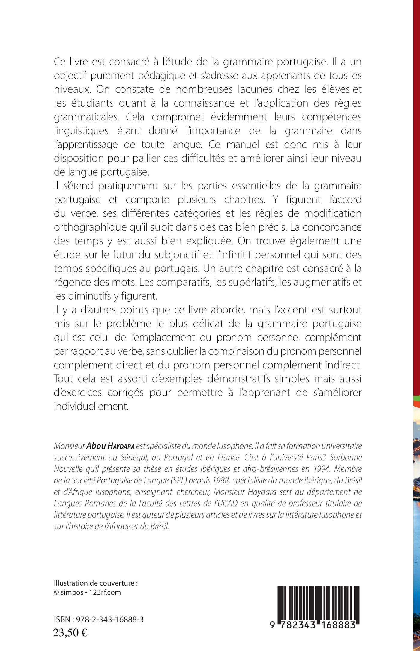 Ce livre s'étend sur les parties essentielles de la grammaire portugaise : l'accord du verbe, ses différentes catégories et les règles de modification orthographique qu'il subit dans des cas bien précis ; la concordance des temps ; le futur du subjonctif et l'infinitif personnel qui sont des temps spécifiques au portugais ; la régence des mots ; les comparatifs, les supérlatifs, les augmenatifs et les diminutifs ; l'emplacement du pronom personnel complément par rapport au verbe. Tout cela est assorti d'exemples démonstratifs simples mais aussi d'exercices corrigés pour permettre à l'apprenant de s'améliorer individuellement.