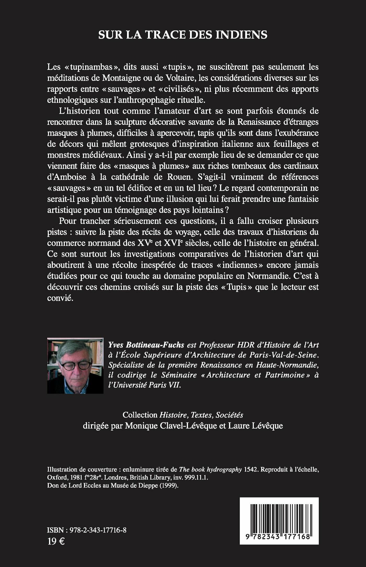 La découverte de l'Amérique fut un événement majeur de l'histoire de la chrétienté. Durant tout le XVIe siècle, les Rouennais et les Cauchois s'imposèrent comme des interlocuteurs privilégiés de certains peuples du Brésil ; les Normands finirent par nouer des liens d'amitié avec la tribu des Tupinambas. Les marins ont rapporté croquis et dessins de cette population et de la végétation luxuriante. Les premiers motifs à s'imposer dans la sculpture décorative savante de la Renaissance sont les masques à plumes, que l'on retrouve par exemple sur les riches tombeaux des cardinaux d'Amboise à la cathédrale de Rouen. Croisant récits de voyage, histoire du commerce normand, histoire générale, l'auteur part sur la piste des traces "indiennes" encore jamais étudiées pour ce qui touche au domaine populaire en Normandie.