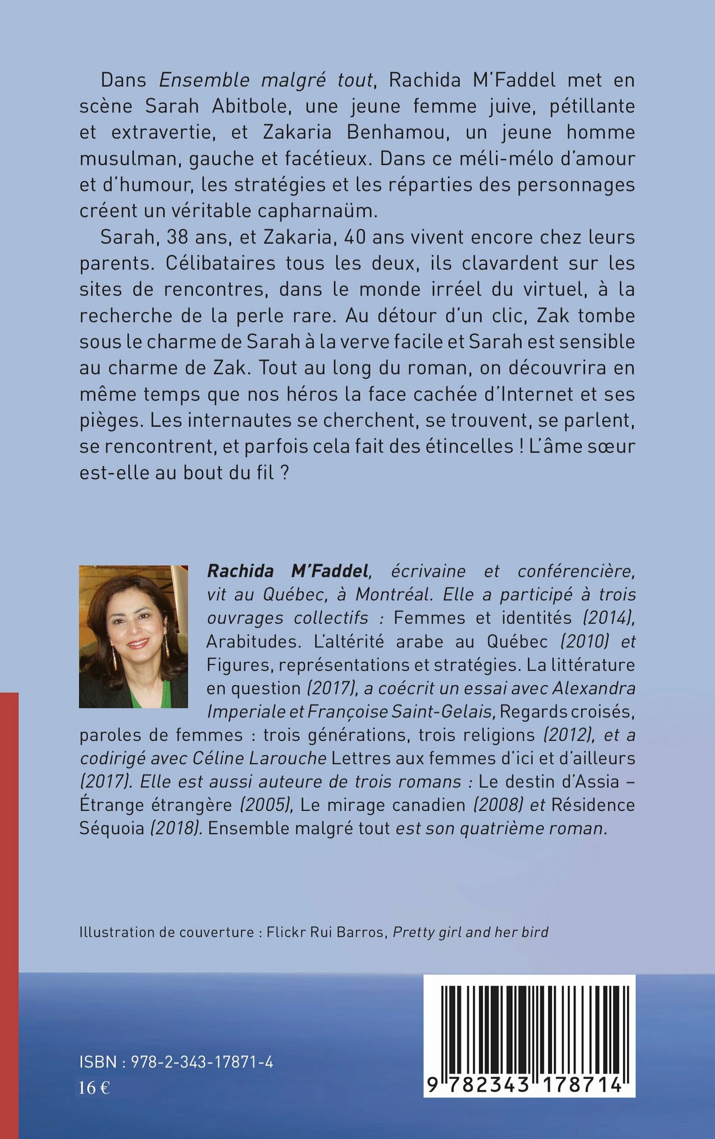 Sarah, 38 ans, et Zakaria, 40 ans vivent encore chez leurs parents. Célibataires tous les deux, ils clavardent sur les sites de rencontres, dans le monde irréel du virtuel, à la recherche de la perle rare. Au détour d’un clic, Zak tombe sous le charme de Sarah à la verve facile et Sarah est sensible au charme de Zak. Tout au long du roman, on découvrira en même temps que nos héros la face cachée d’Internet et ses pièges. Les internautes se cherchent, se trouvent, se parlent, se rencontrent, et parfois cela fait des étincelles ! L’âme sœur est-elle au bout du fil ?