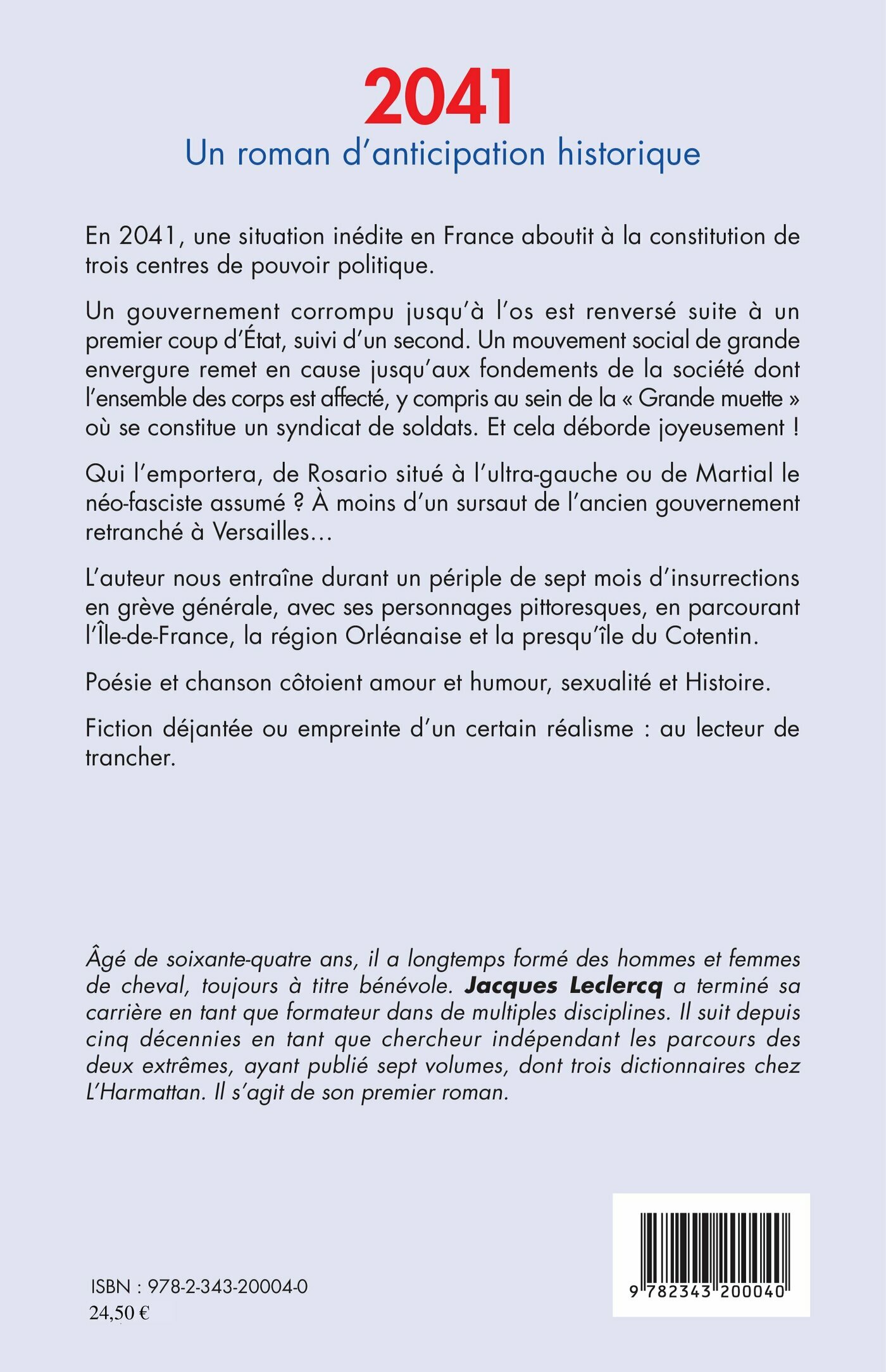 En 2041, une situation inédite en France aboutit à la constitution de trois centres de pouvoir politique. Un gouvernement corrompu jusqu’à l’os est renversé suite à un premier coup d’État, suivi d’un second. Un mouvement social de grande envergure remet en cause jusqu’aux fondements de la société dont l’ensemble des corps est affecté, y compris au sein de la « Grande muette » où se constitue un syndicat de soldats. L’auteur nous entraîne durant un périple de sept mois d’insurrections en grève générale, avec ses personnages pittoresques, en parcourant l’Île-de-France, la région Orléanaise et la presqu’île du Cotentin.