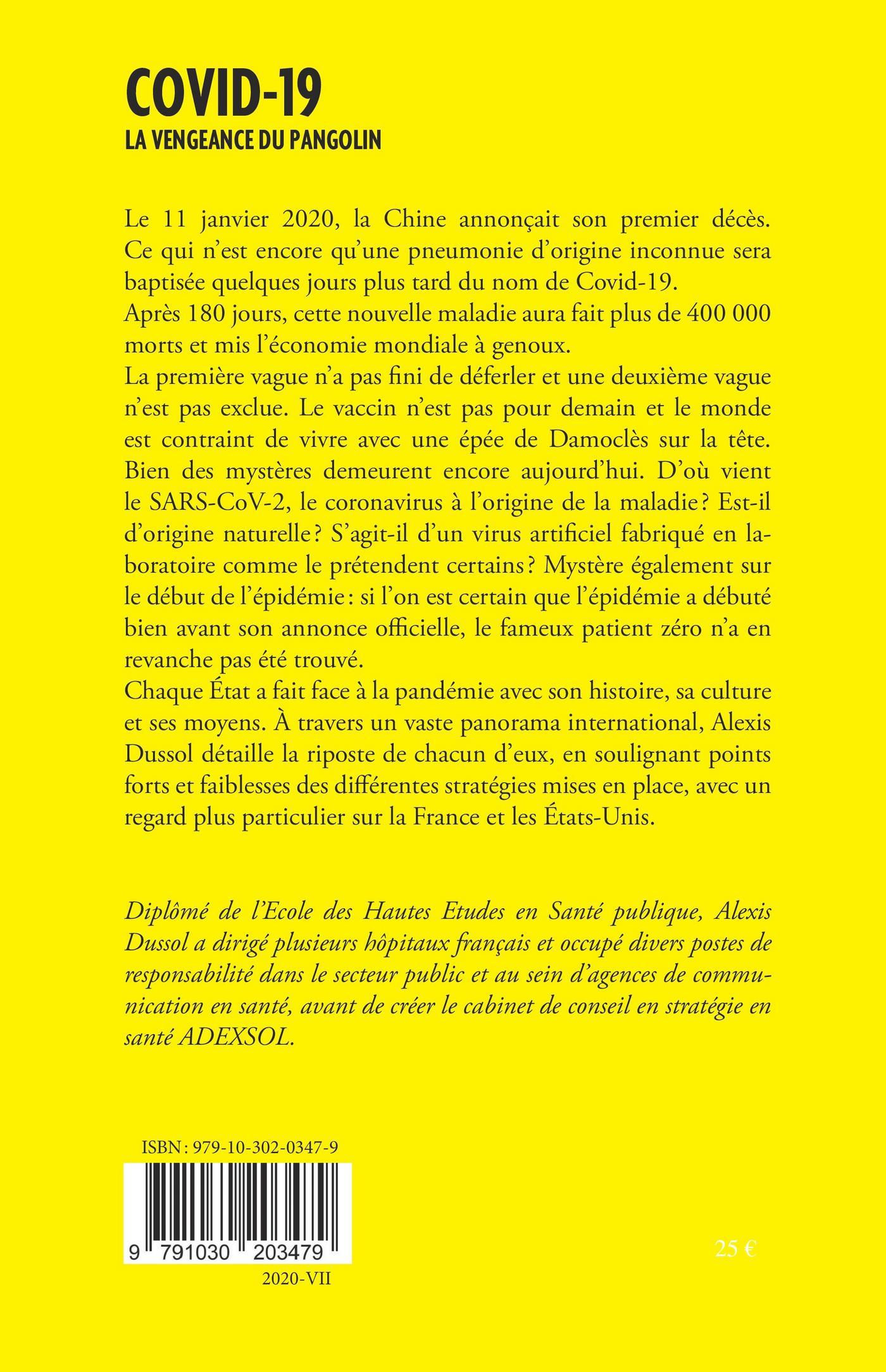 Le 11 janvier 2020, la Chine annonçait son premier décès. Ce qui n'est encore qu'une pneumonie d'origine inconnue sera baptisée quelques jours plus tard du nom de Covid-19.Après 180 jours, cette nouvelle maladie aura fait plus de 400 000 morts et mis l'économie mondiale à genoux. La première vague n'as pas fini de déferler et une deuxième vague n'est pas exclue. Le vaccin n'est pas pour demain et le monde est contraint de vivre avec une épée de Damoclès sur la tête.Chaque Etat a fait face à la pandémie avec son histoire, sa culture et ses moyens. A travers un vaste panorama international, Alexis Dussol détaille la riposte de chacun d'eux, en soulignant points forts et faiblesses des différentes stratégies mises en place, avec un regard plus particulier sur la France et les Etats-Unis.
